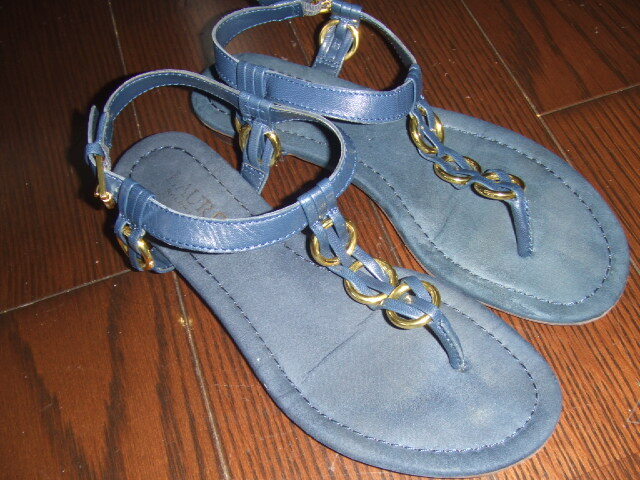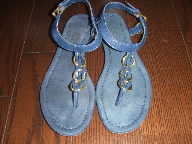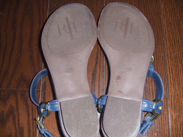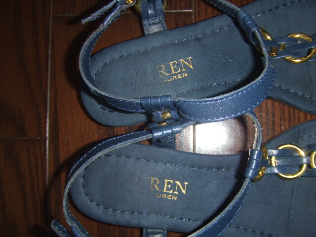 良品 LAUREN  RALPH LAUREN / アンクルストラップ サンダル ブルーレザー