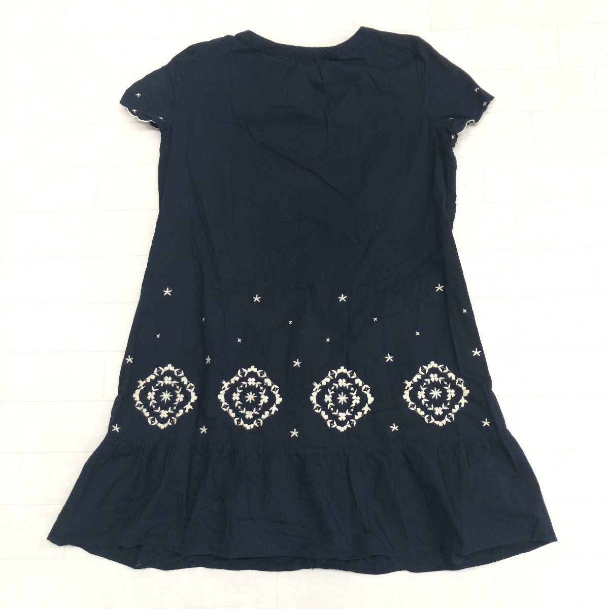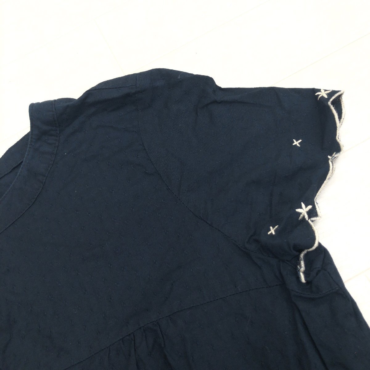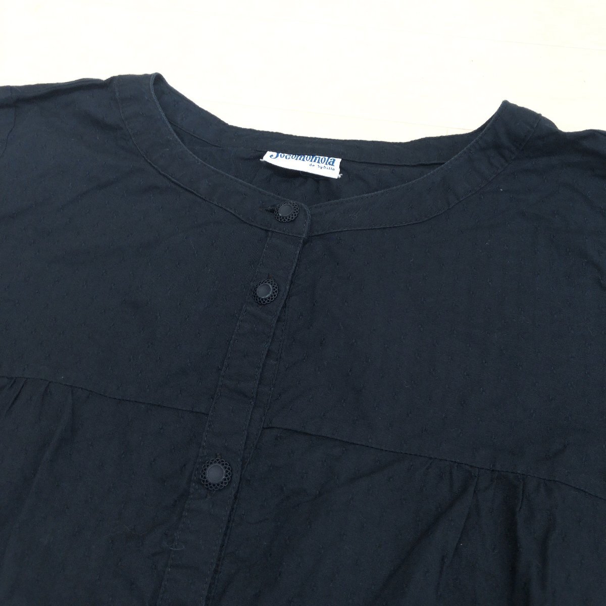 Jocomomola ホコモモラ コットン100% 刺繍デザイン フリル チュニック シャツ ワンピース 40(M) 黒 ブラック 半袖 ミディ丈 女性用 シビラ