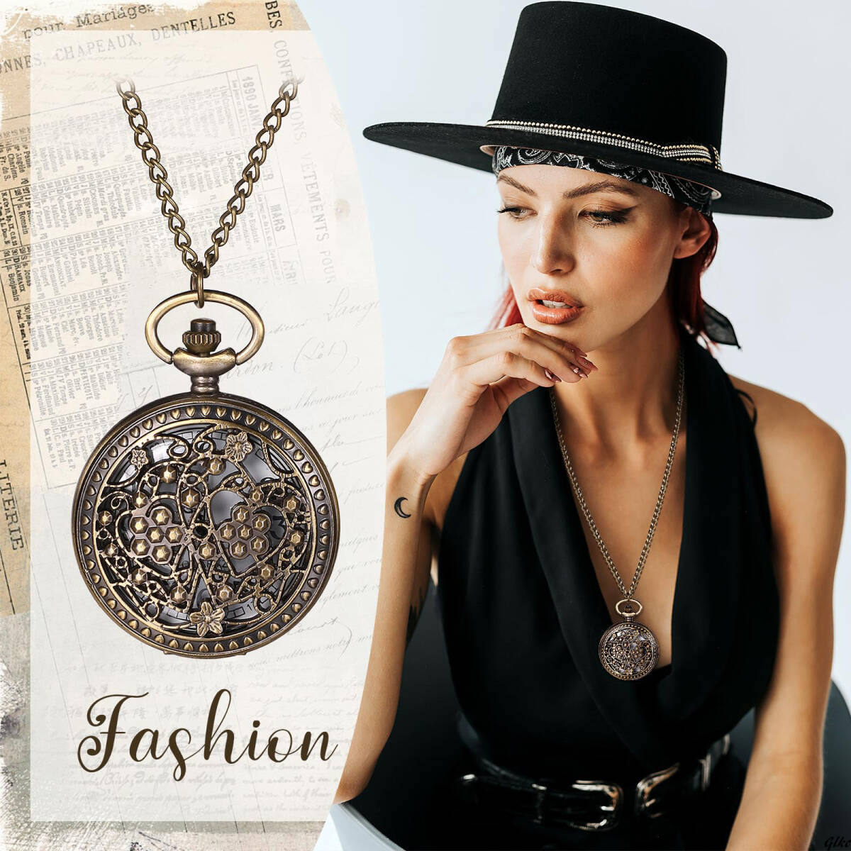 【日常生活防水で雨や水しぶきに対応】 懐中時計 ネックレス ハート アンティーク 防水 ペンダントウォッチ ブロンズ アクセサリー
