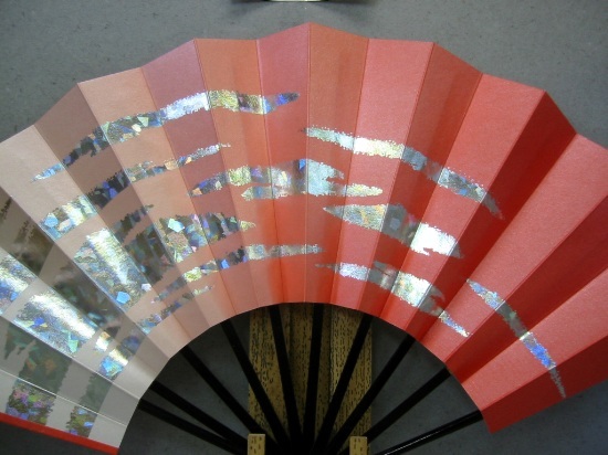 舞扇子 A1216 ホロ箔雲 朱横ぼかしシルバー地 【箱なし】