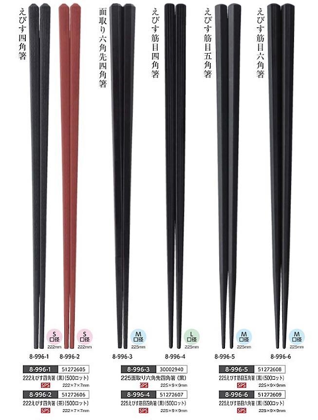 ☆頭面取り六角先四角箸黒約225mm50膳洗浄機対応耐熱温度260℃日本製新品