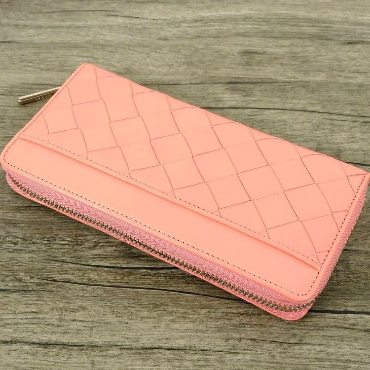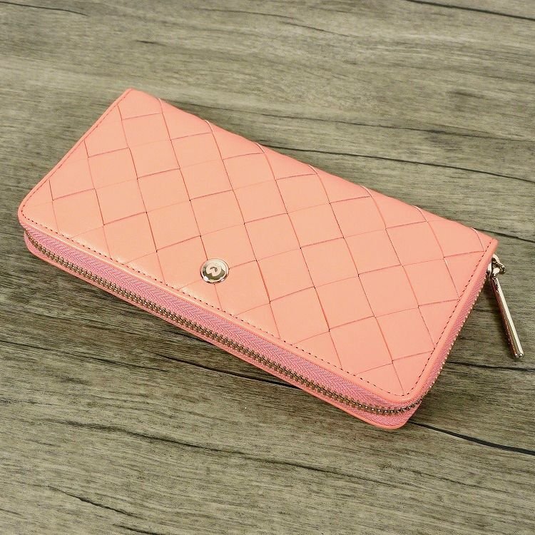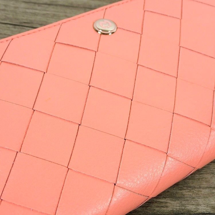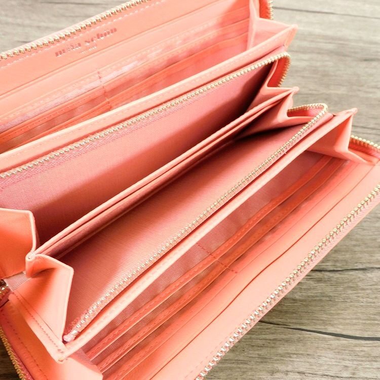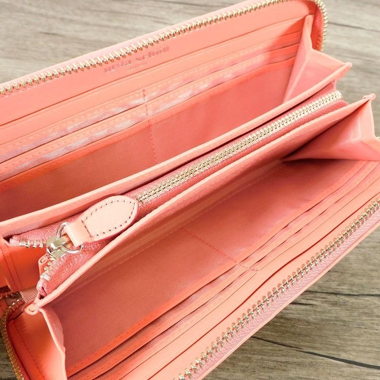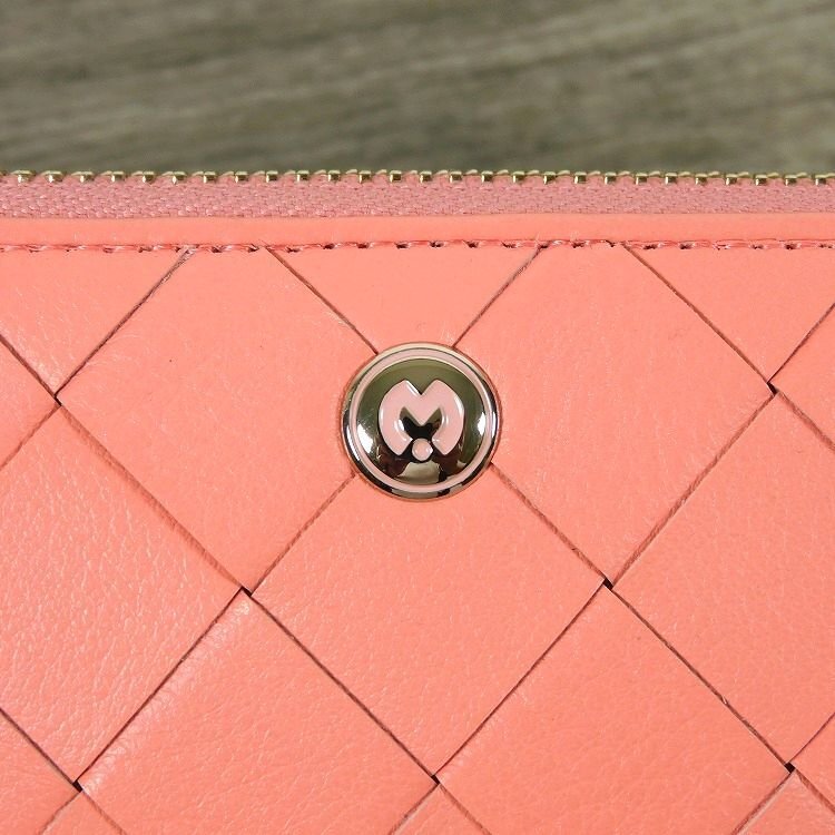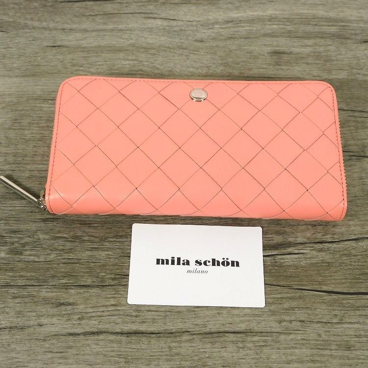新品 即決 定価26,400円 ミラショーン ラウンドジップ 長財布 ピンク 牛革 イントレチャーレ mila schon レディース【4542】