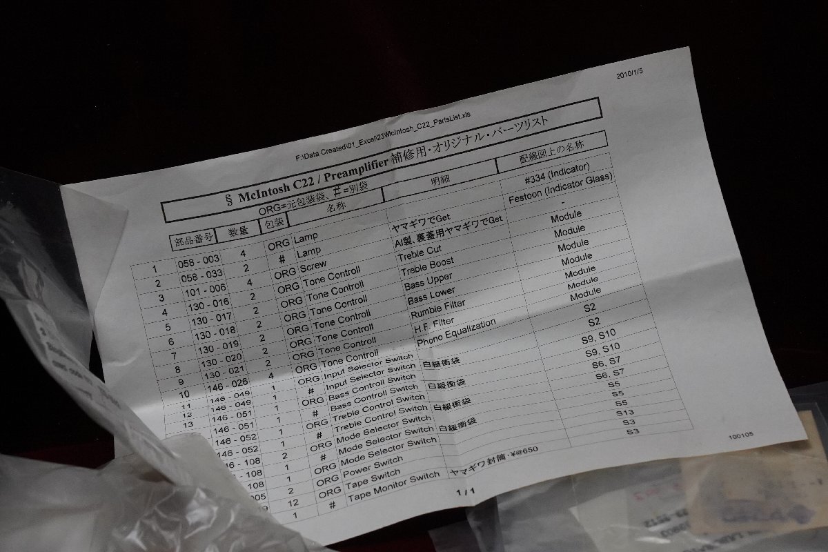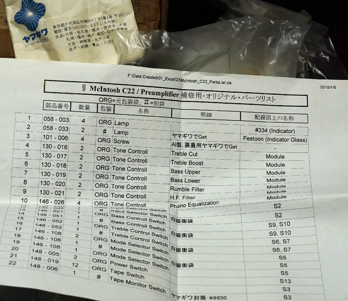 A&P 超珍品:MCINTOSH:C22:old用:真空管プリ純正修理KITです PART-KIT」1955年当時のもの:一部欠品あり 【 商品説明 】 ●以前はメ-カが純正の修理パ-ツ売っていました ●「TOYODENKA-America:サンフランシスコ」からBLUE-LEBEL-SERVICE」で購入したもの ●一部:ヤマギワ東京」から購入しています ●メ-カ製品ですから「部品番号記載しています ●BLACK(スピラグ)コンデンサ-」もあります すべてはありません ●なんせ60年前の部品ですから容量抜けもありますと考えますが実測していま セレクタ」lSW類はまさにレアものです ●内部に一部使用済みコンデンサが数個あります ●リストになありますあります ●以上をご理解ください:NC/NRです ●真空管はございません ●外箱には傷・スレ、汚れ等ございます。 ●送料は送料無料です ●落札時ストアからのメールを必ずご覧ください。取引に必要な情報が記載してあります。 ●必ず下記の注意事項をご覧になってください。 【 送 料 】 ●送料は送料無料です。よろしくお願いします ●落札時ストアからのメールを必ずご覧ください。取引に必要な情報が記載してあります。 ●不明な点がございましたら質問欄からご連絡ください。 |