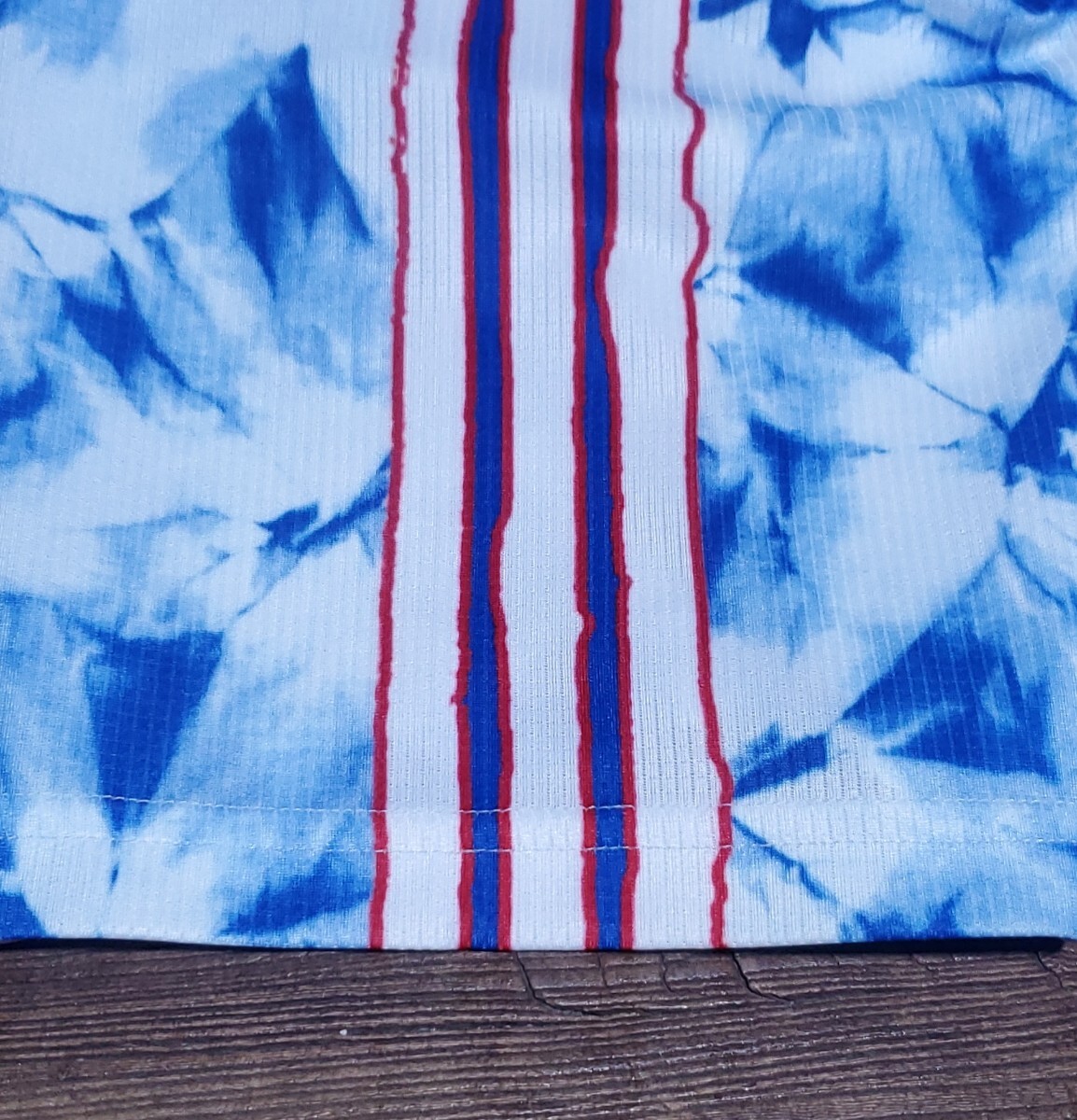 1] 左下ラバーワッペンの四隅が接着弱化によりめくれ