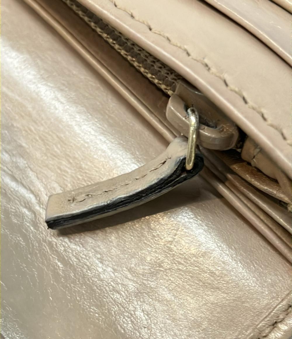 | ・全体的:型くずれ 歪み ・表面 背面:スレ 汚れ あたり跡 ・内面:スレ 汚れ シワ あたり跡 ・角:スレ ・小銭入れ内:汚れ |