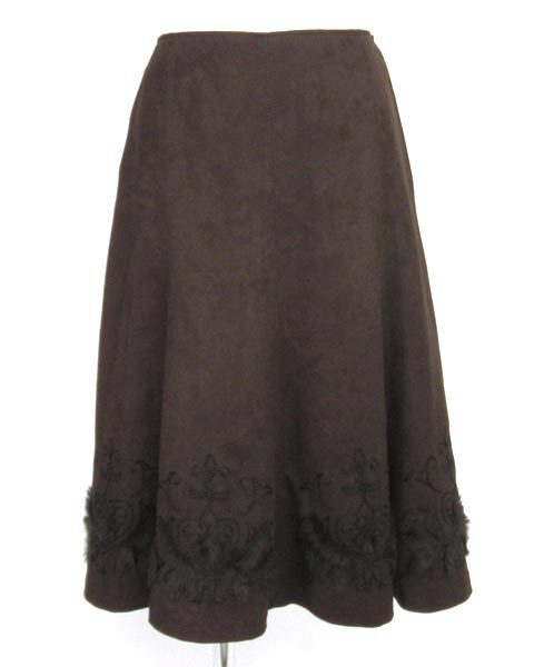 | 大人女性のフェイクスウェードフレアスカート♪なめらかなフェイクスエード素材の季節感のあるオシャレなスカートです。スカート下部分の刺繍とファーがアクセントとなっています。フレアシルエットが女性らしく、大人っぽく決まりますよ。 |