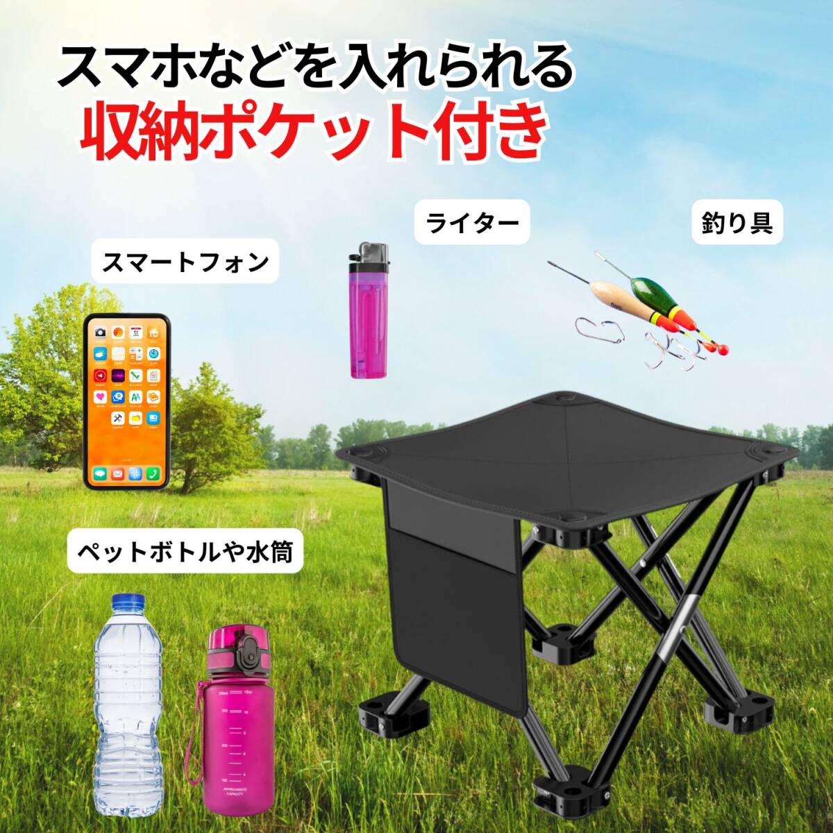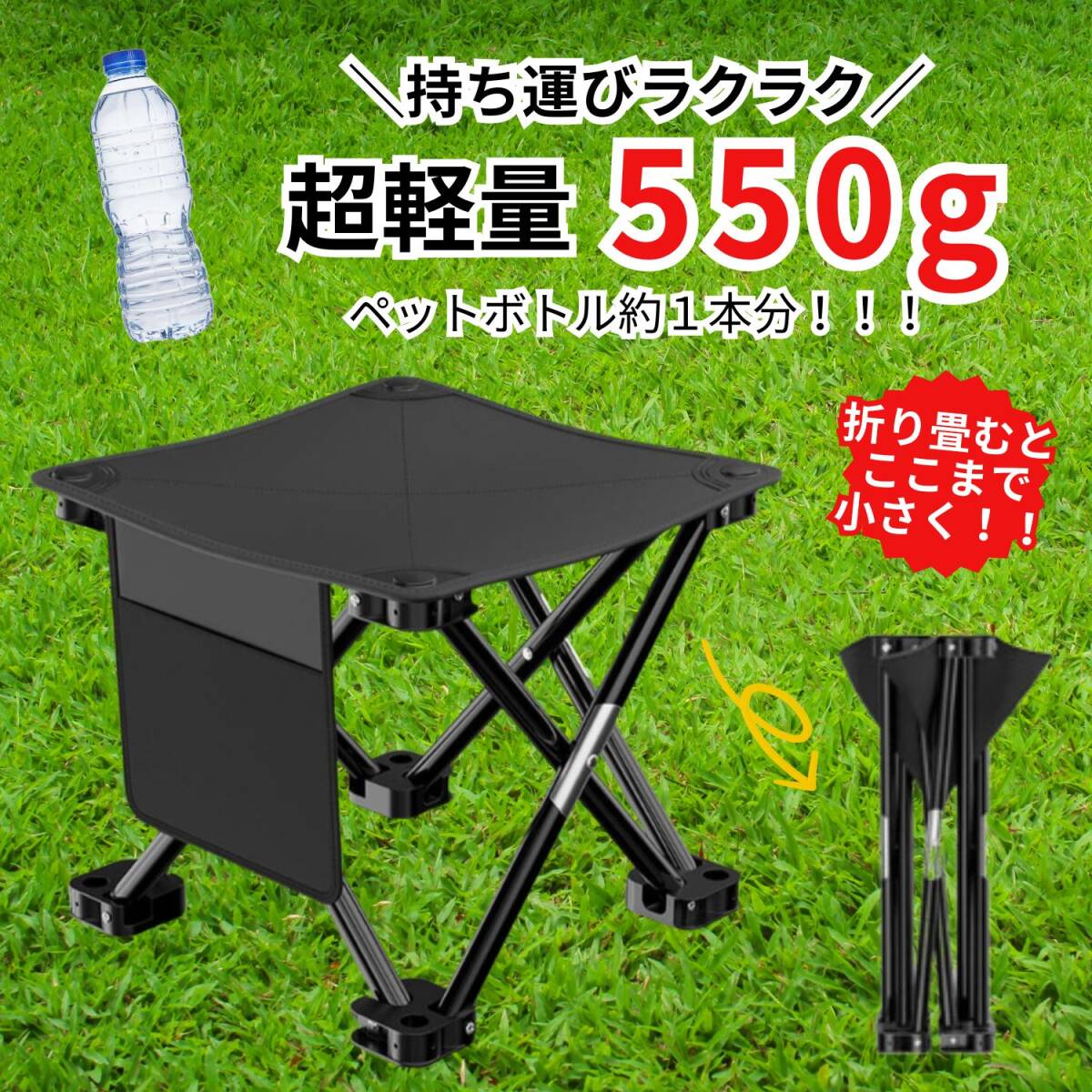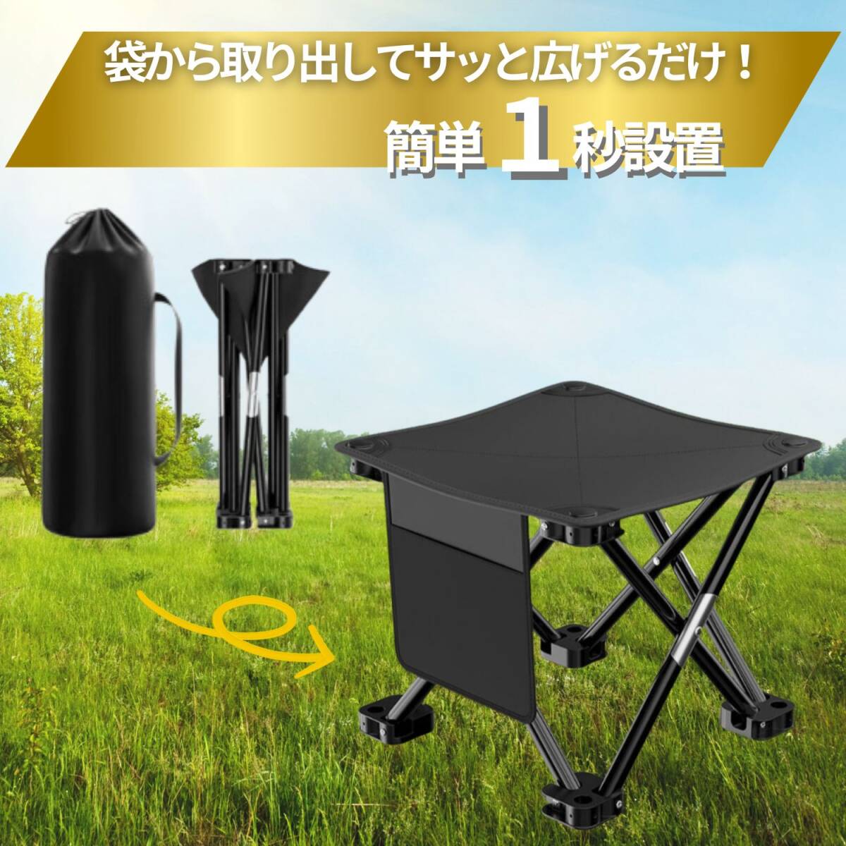 折り畳み椅子 持ち運び椅子 収納袋付き 1個 キャンプ アウトドア アウトドアチェア キャンプチェア 折りたたみ キャンプイス 軽量 ブラック