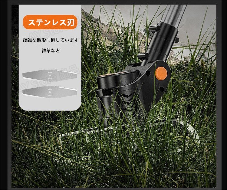 電動草刈り機 充電式草刈機 草刈り機 コードレス 10000回転/分 バッテリー付き 多替刃付き 低騒音 伸縮可 角度調整可 家庭用 芝刈り機
