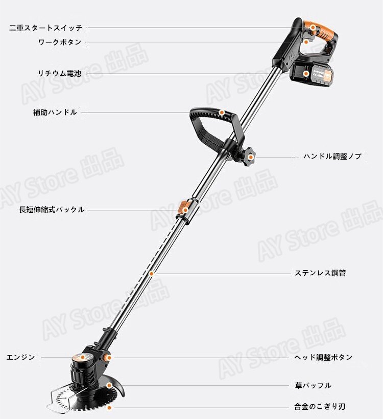 電動草刈り機 充電式草刈機 草刈り機 コードレス 10000回転/分 バッテリー付き 多替刃付き 低騒音 伸縮可 角度調整可 芝刈り機 bhw0140
