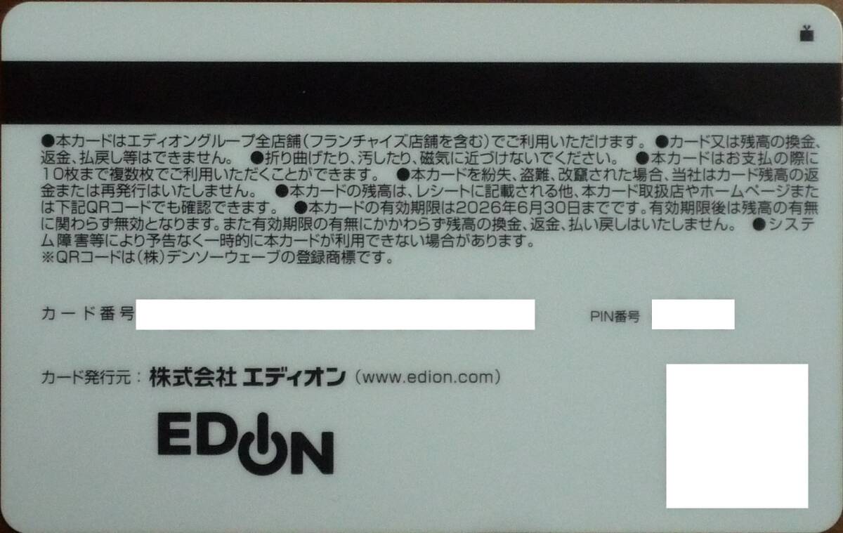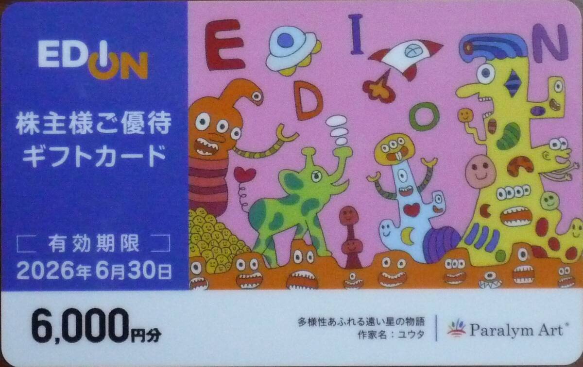 ■㈱エディオンの株主優待ギフトカード6,000円分です。 |