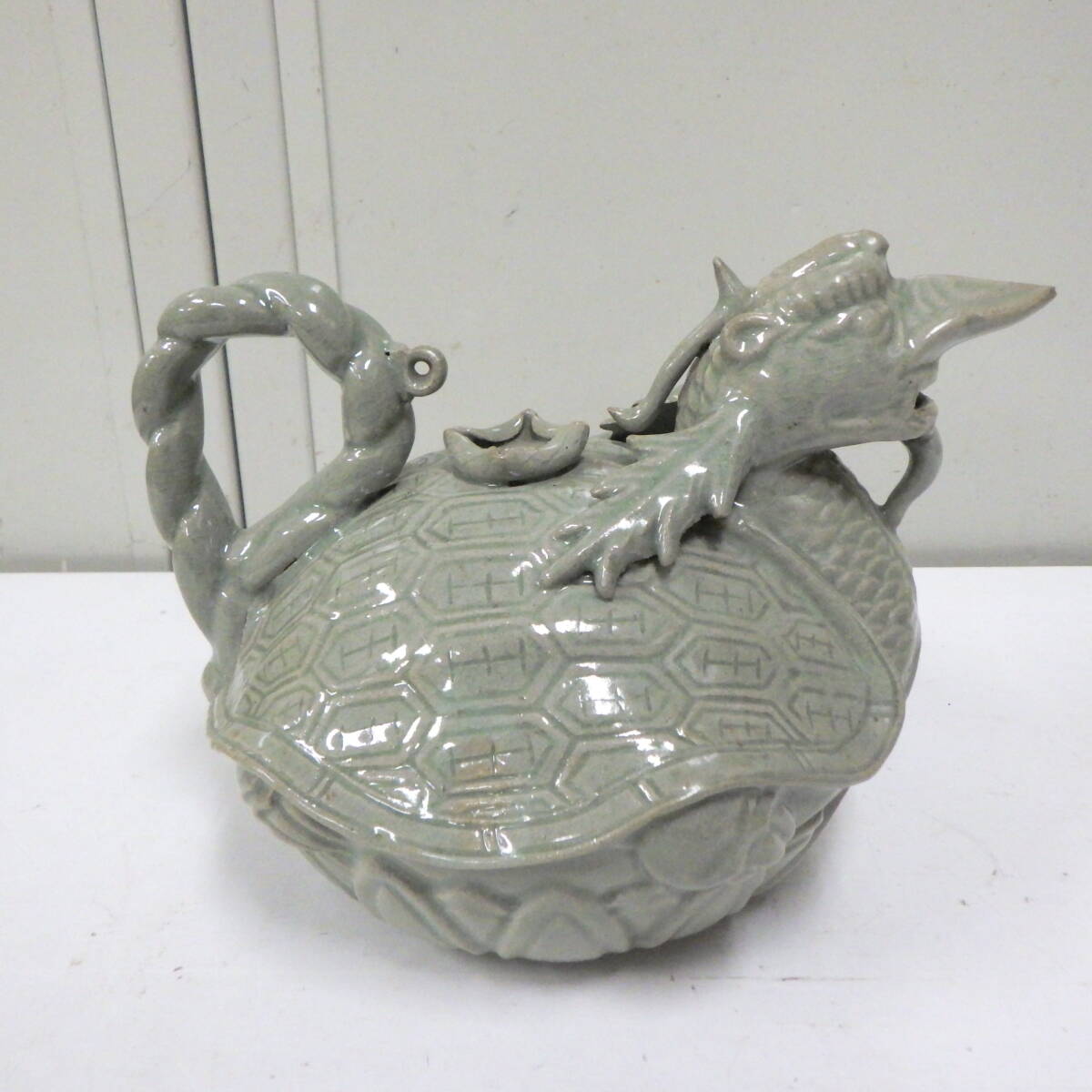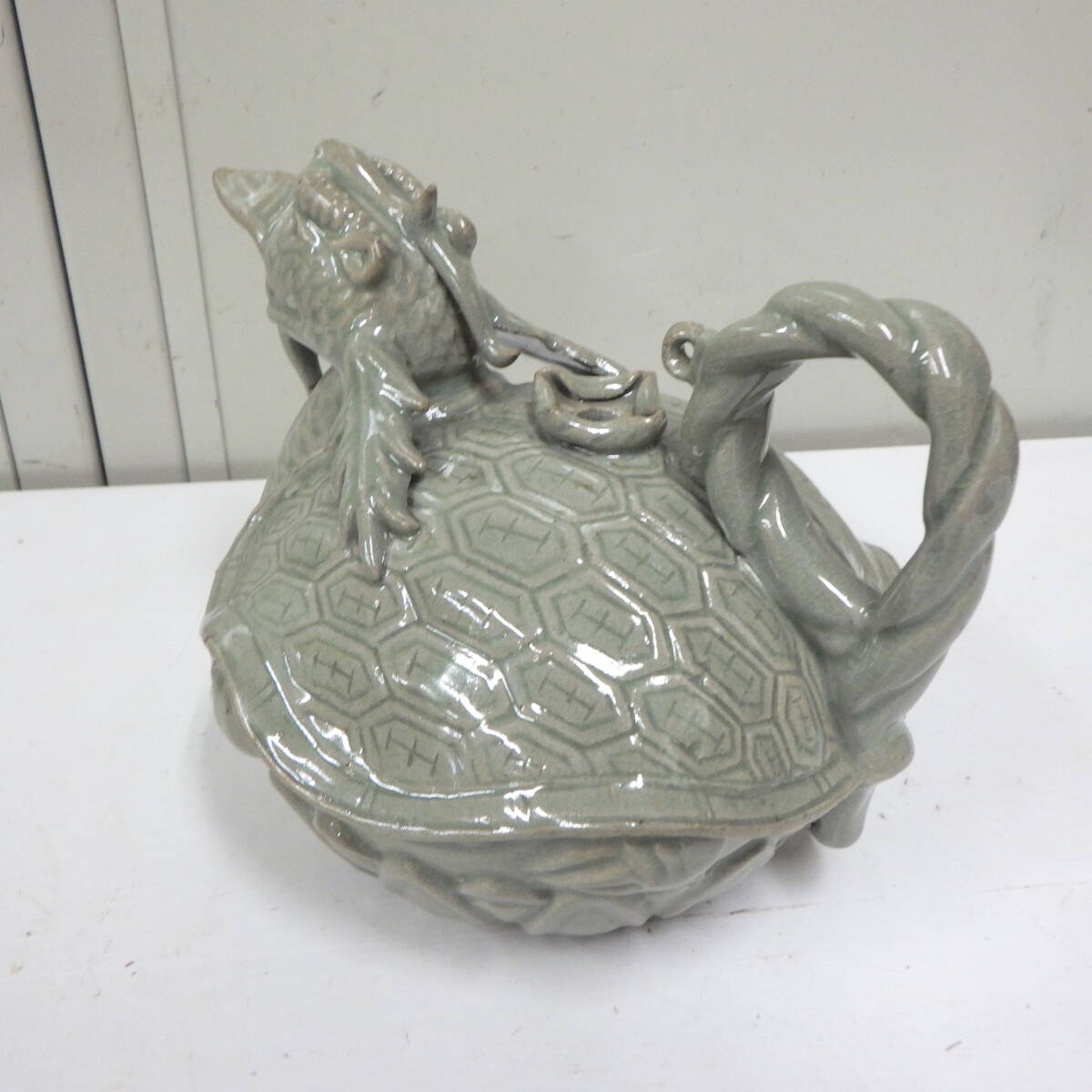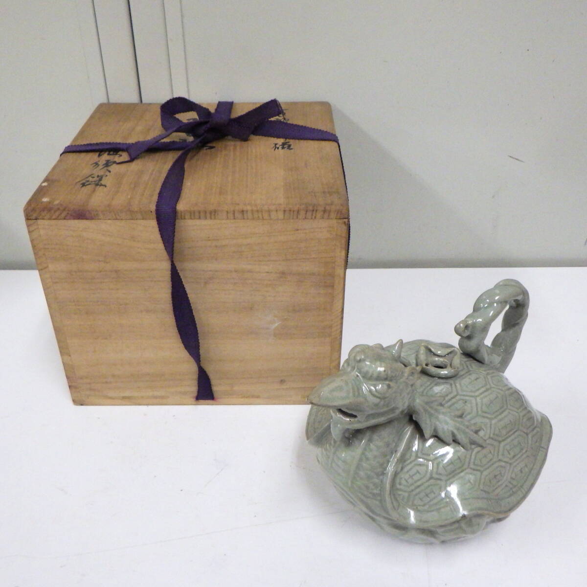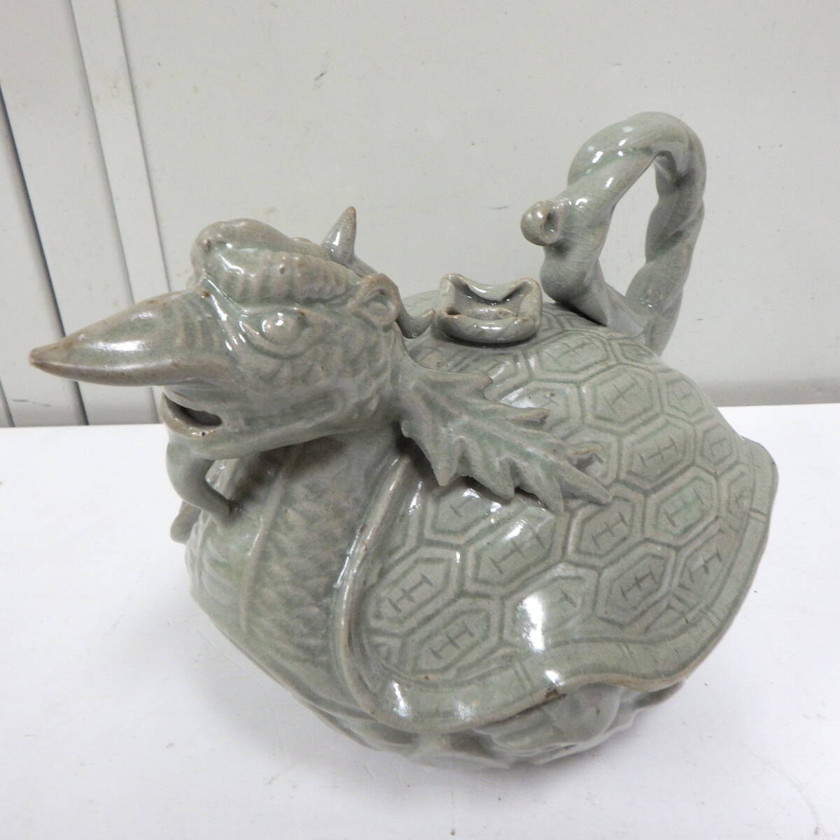 韓国陶磁器 高麗青磁 池順鐸 ジ・スンタク 龍亀型 龍口 水滴 水注 急須 水差し