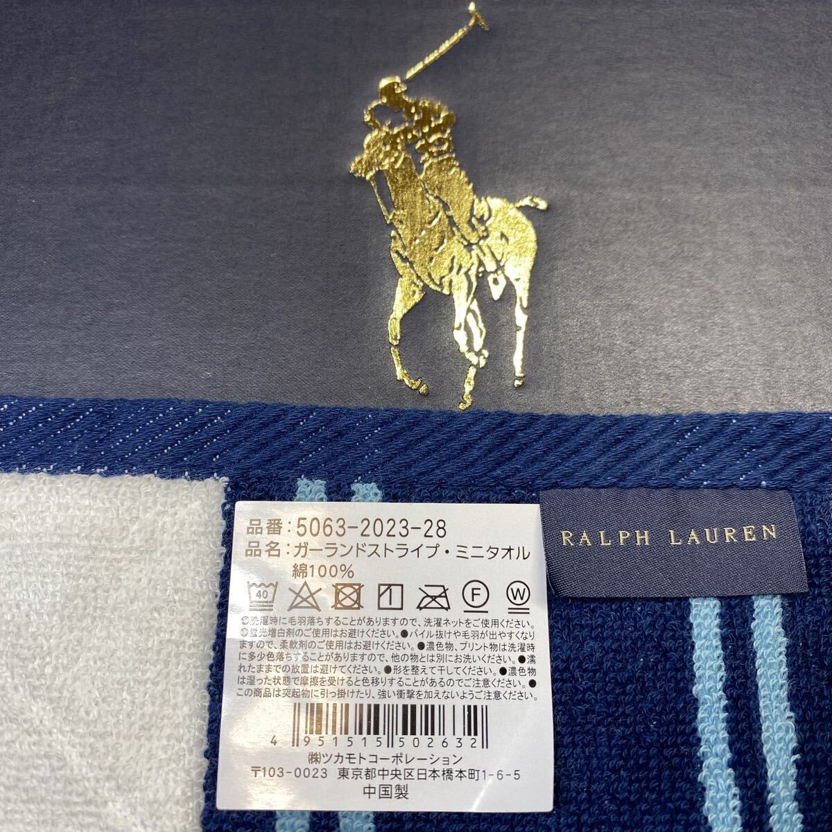 手触り抜群!新品未使用タグ付RALPH LAURENラルフローレン ツカモト正規ガーランドストライプPONY刺繍ミニタオル ハンドタオル ハンカチ約26