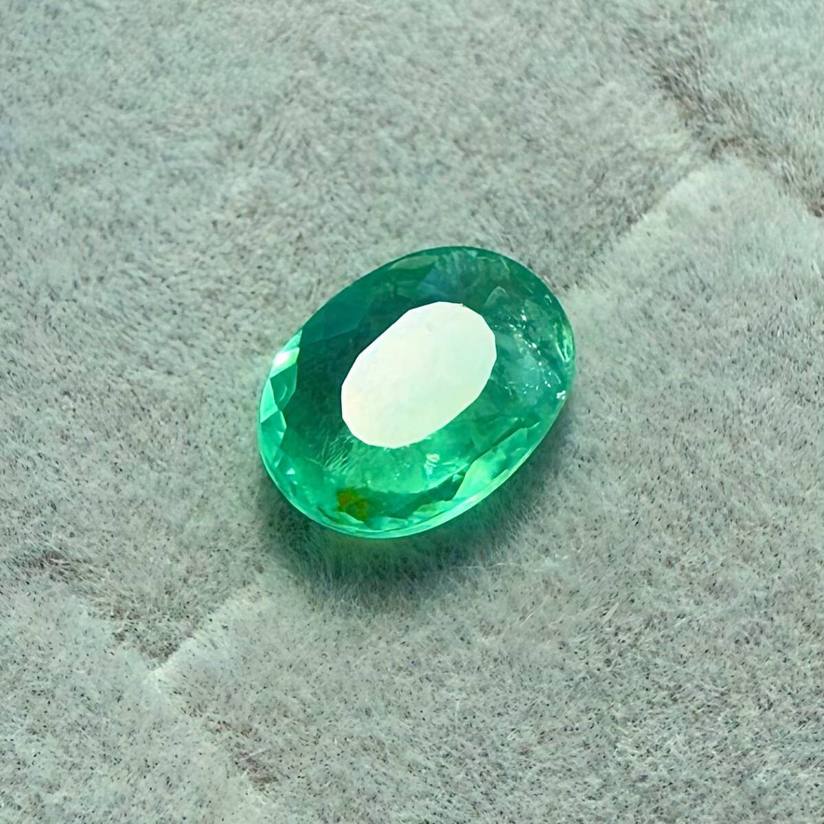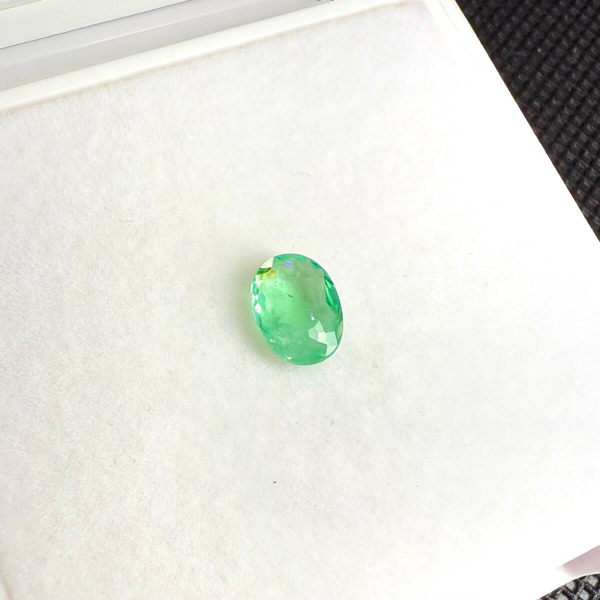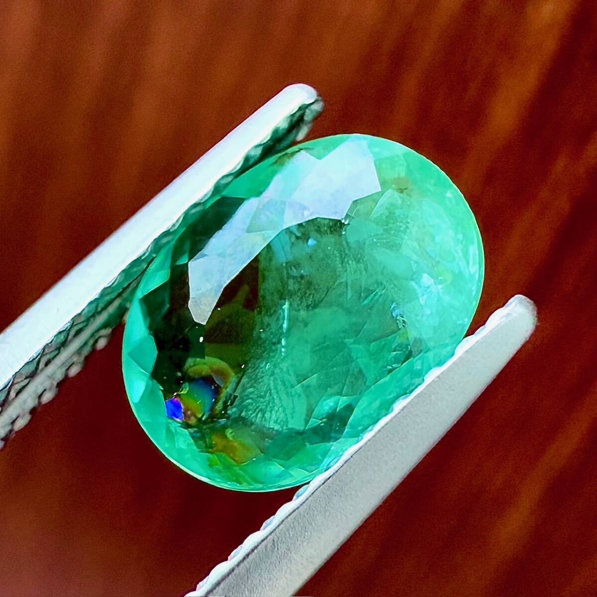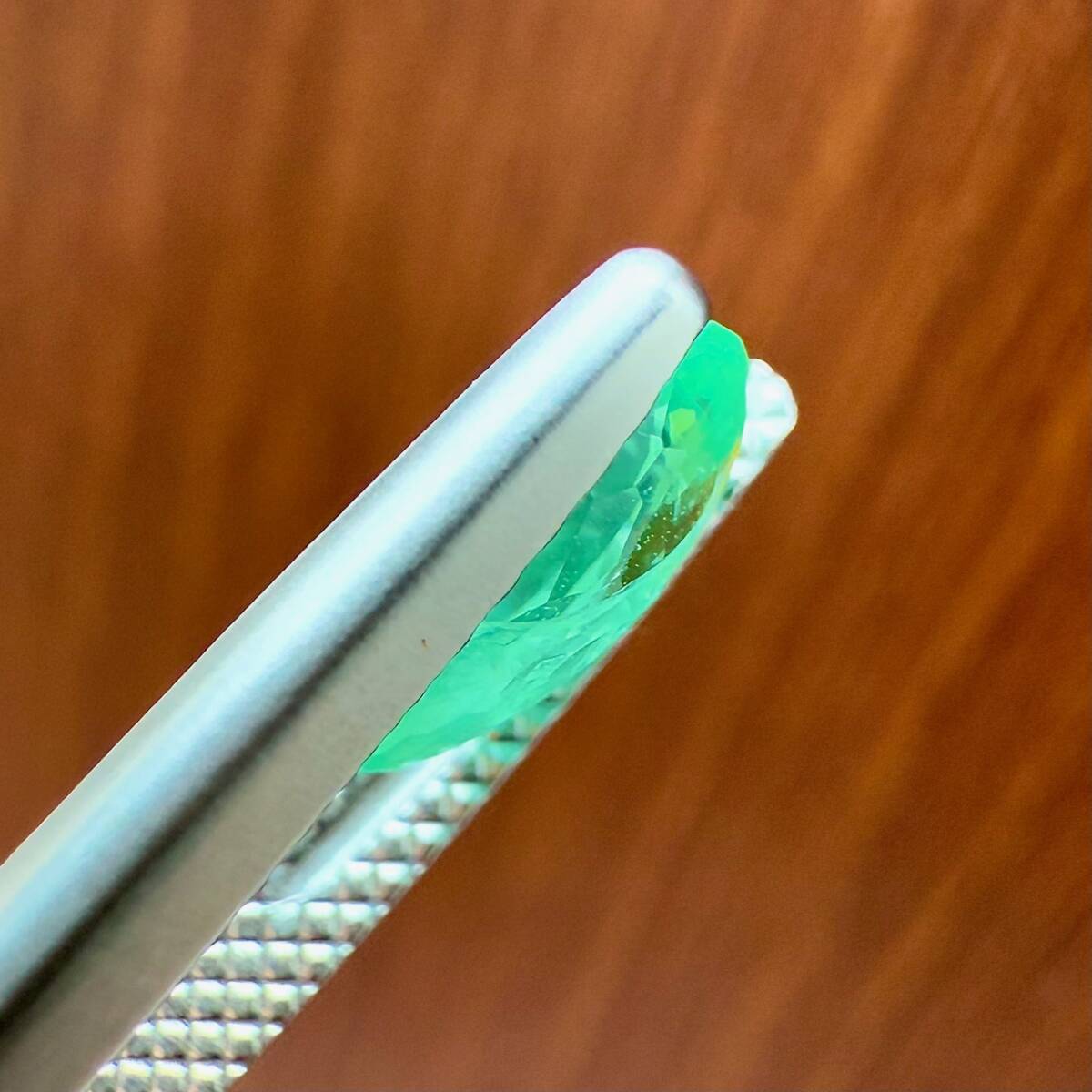 透明ネオングリーンのパライバ。天然パライバトルマリン特有のインクリュージョンはありますが、1カラットアップの大粒サイズ、カット面も美しく、艶とテリ(輝き)もある綺麗なルースです。