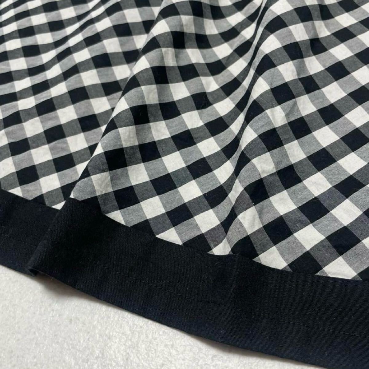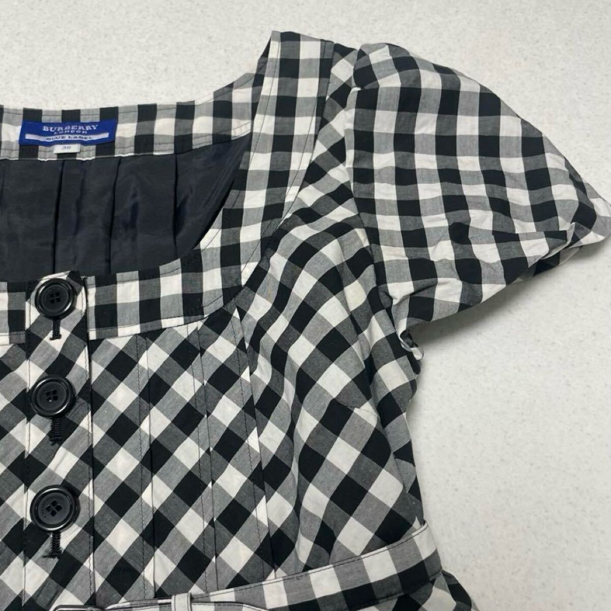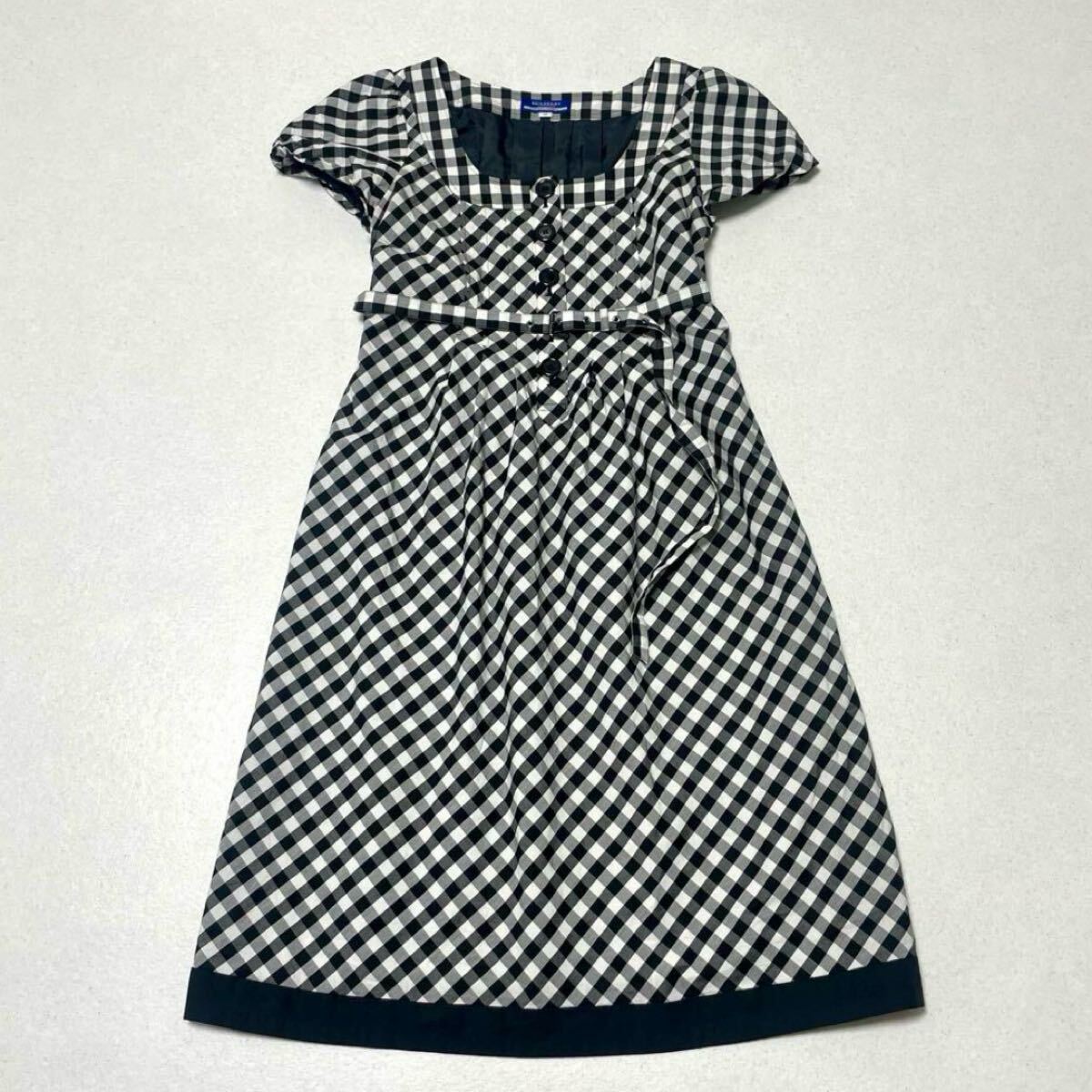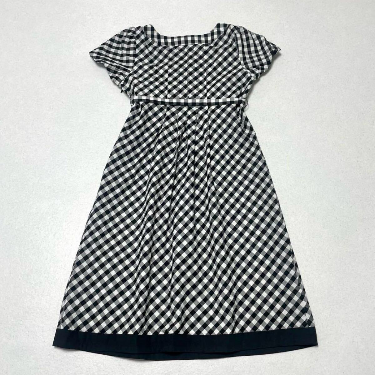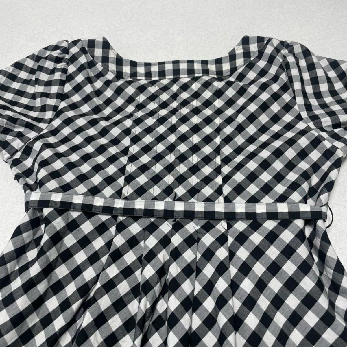 ギンガムチェック ロゴ入りボタン ベルト付き 膝丈 ワンピース 半袖