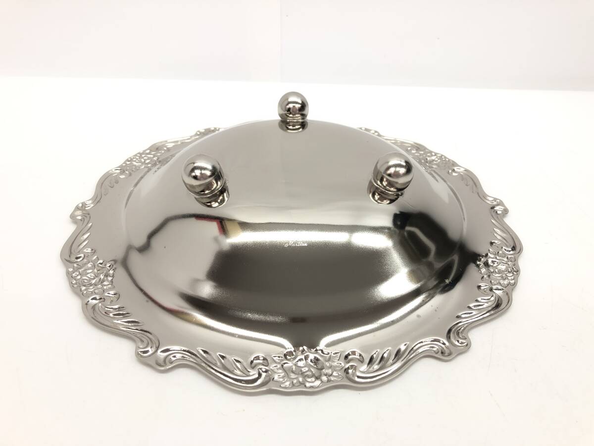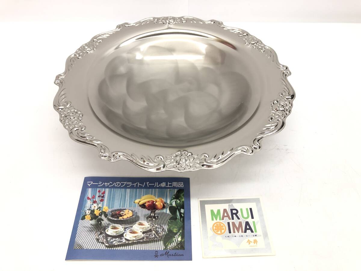 | 保管品 Martian マーシャン 丸形 三つ足 コンポート皿 ブライトパール仕上げ フルーツ皿 フルーツ盛皿 フルーツ置き 洋食器 直径26㎝ 栞付 |