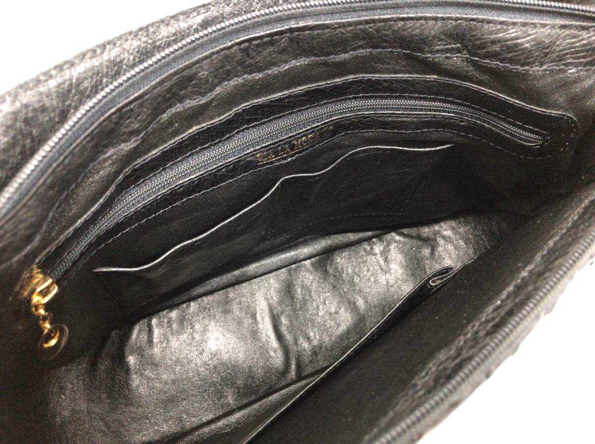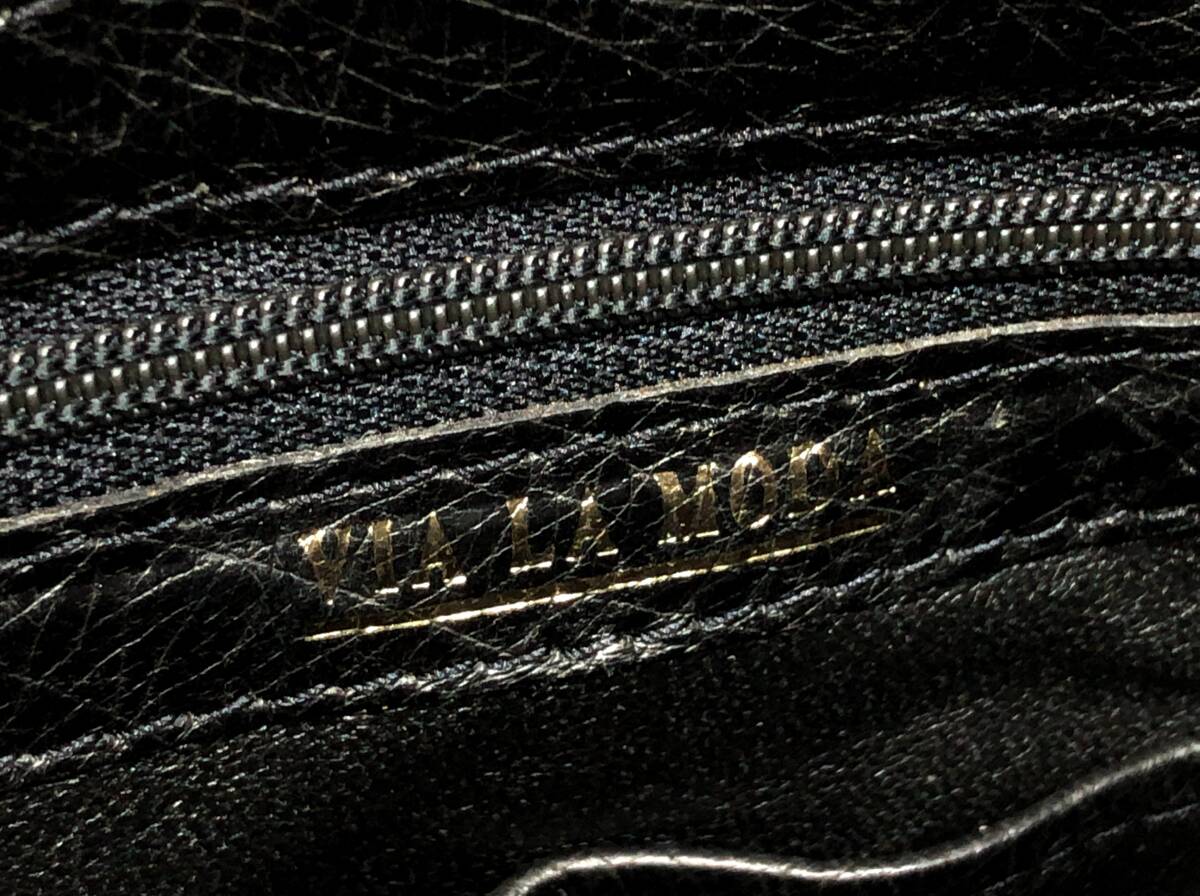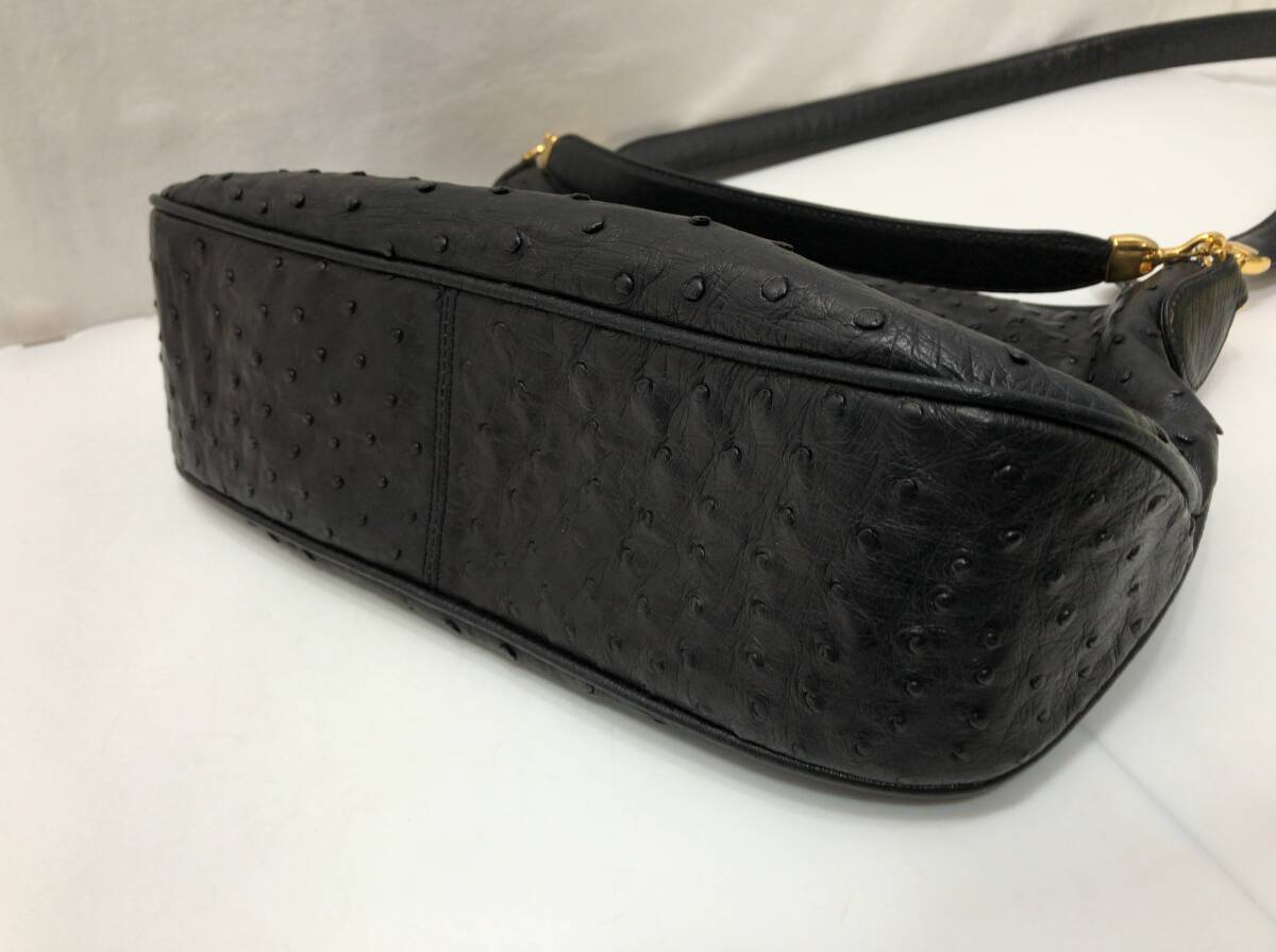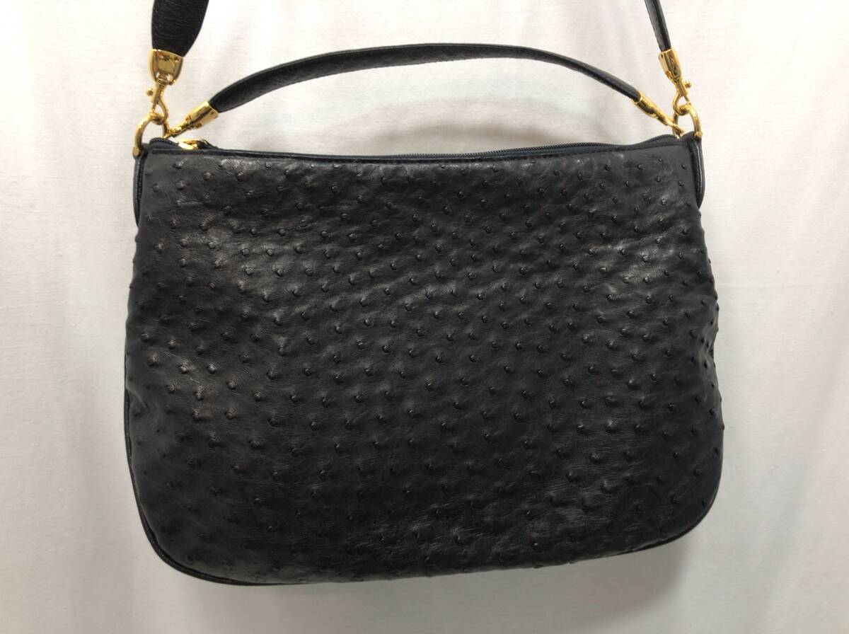 VIA LA MODA ヴィアラモーダ オーストリッチ レザー 2way ショルダーバッグ ハンドバッグ ブラックx金具ゴールドカラー 鏡セット H1