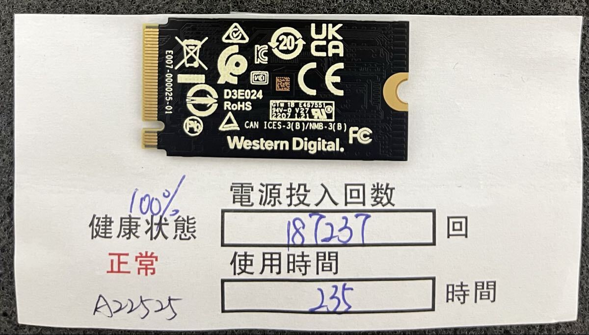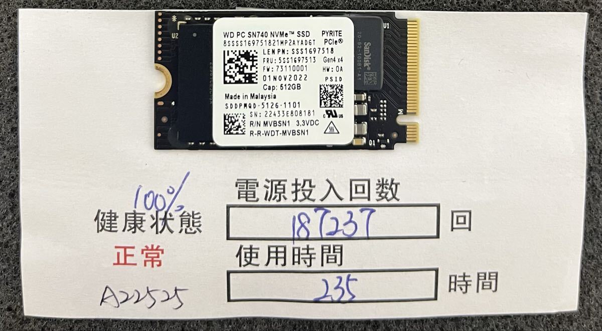 A22525/中古品/M.2 SSD/NVME/2242/WD/512GB/動作確認済み/返品返金対応/納品書発行可(商品説明文ご確認下さい)