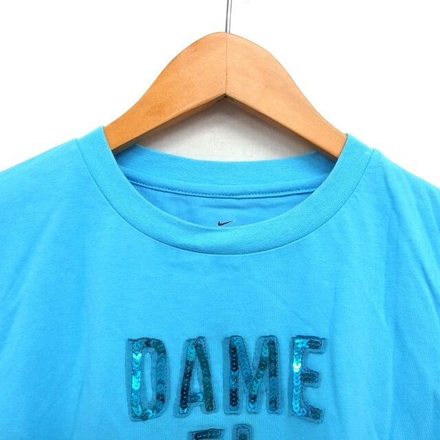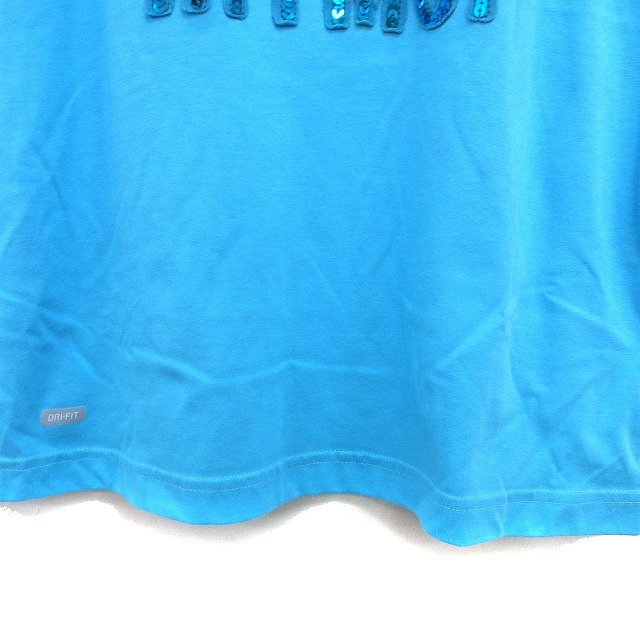 ナイキ NIKE 国内正規品 DRI-FIT クルーネック カットソー Tシャツ スパンコール 英字 コットン混 半袖 L ライトブルー /NT20 レディース