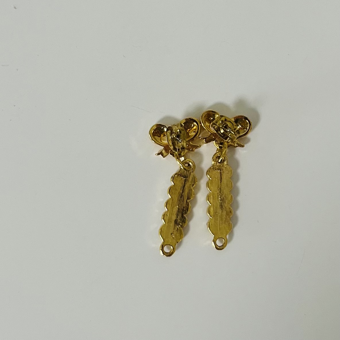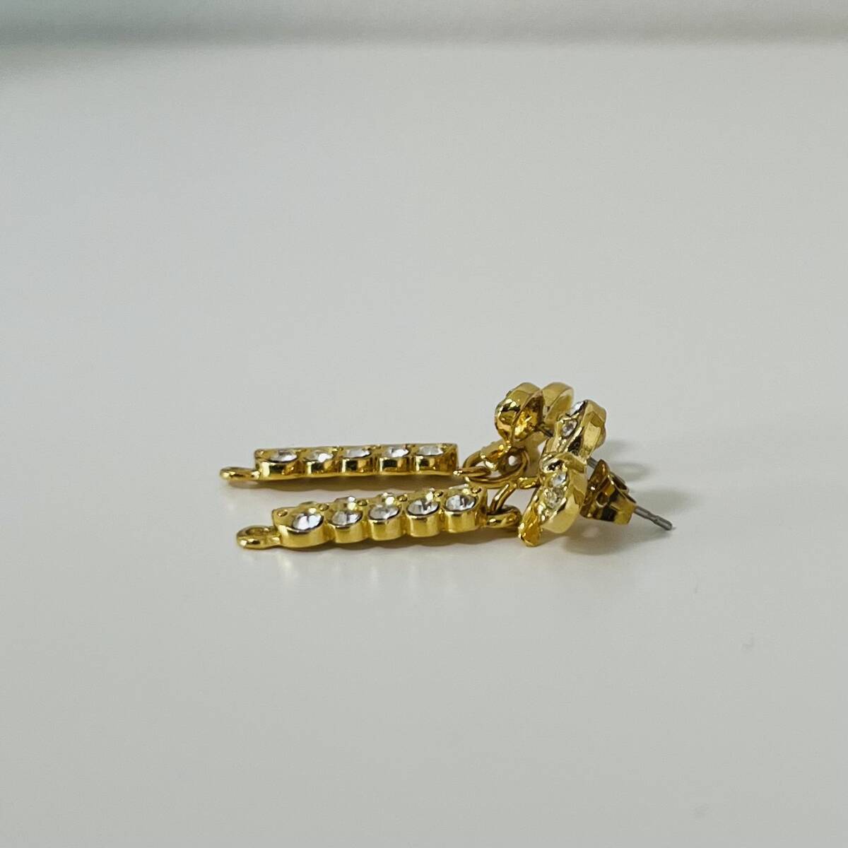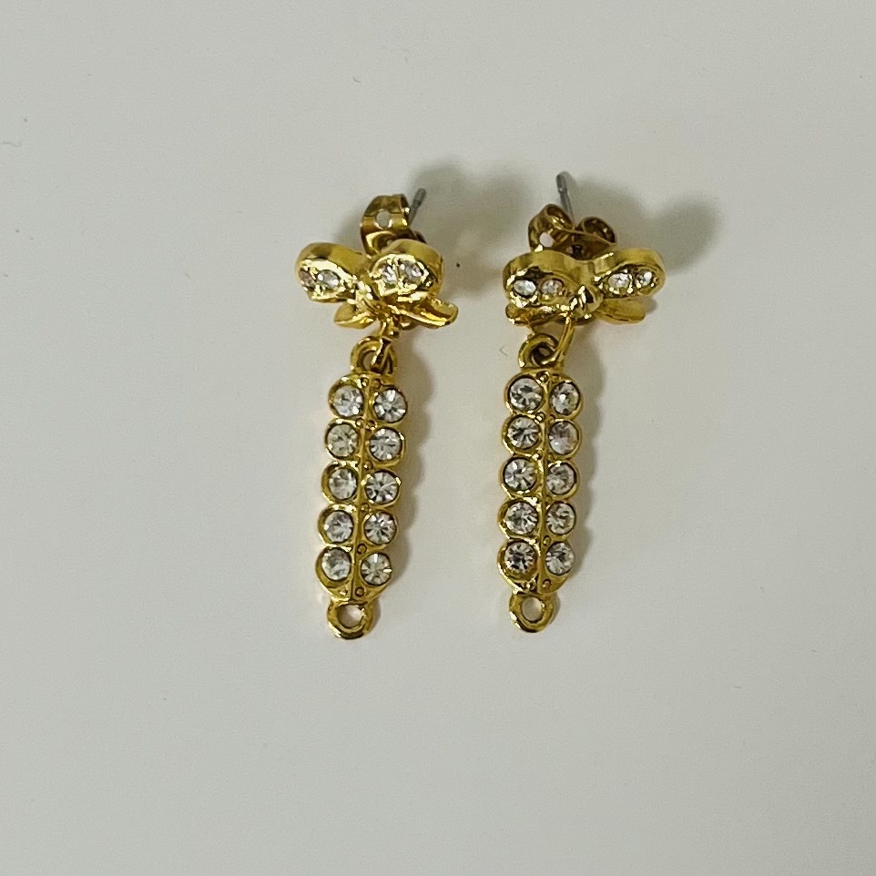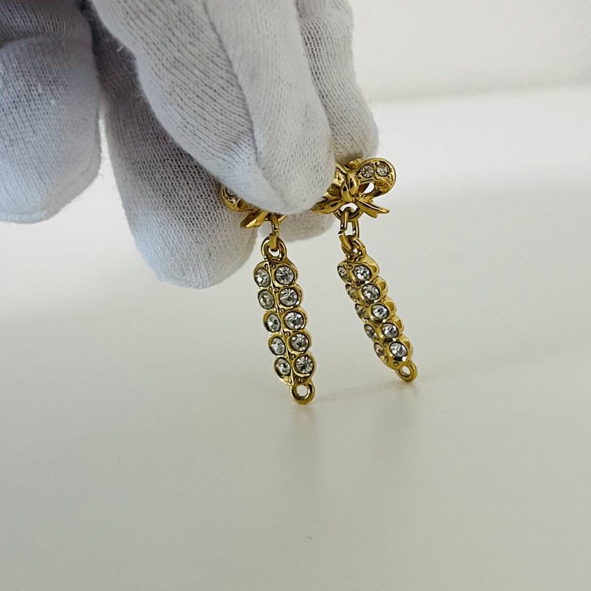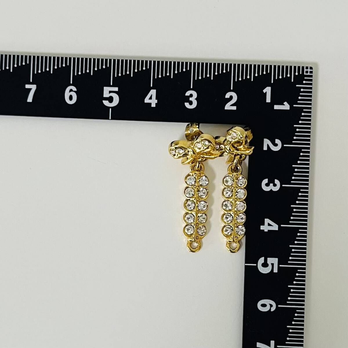 237 アンティーク ビンテージ アクセサリー ピアス 未使用保管品!ゴールドカラー ラインストーン リボン 揺れ感 小ぶり 海外製