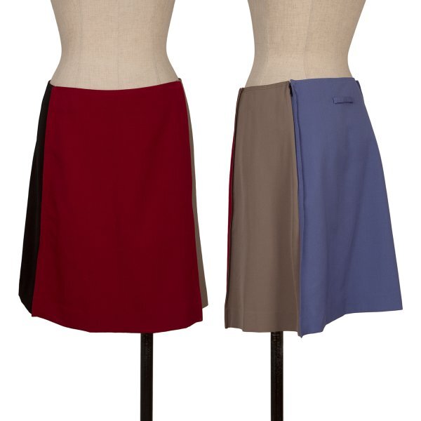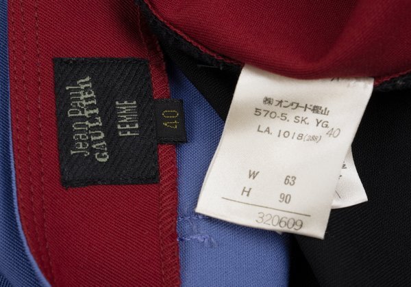 | ジャンポールゴルチエ ファムJean Paul GAULTIER FEMME カラーパネル切替ウールギャバ台形スカート 赤水色他40 |