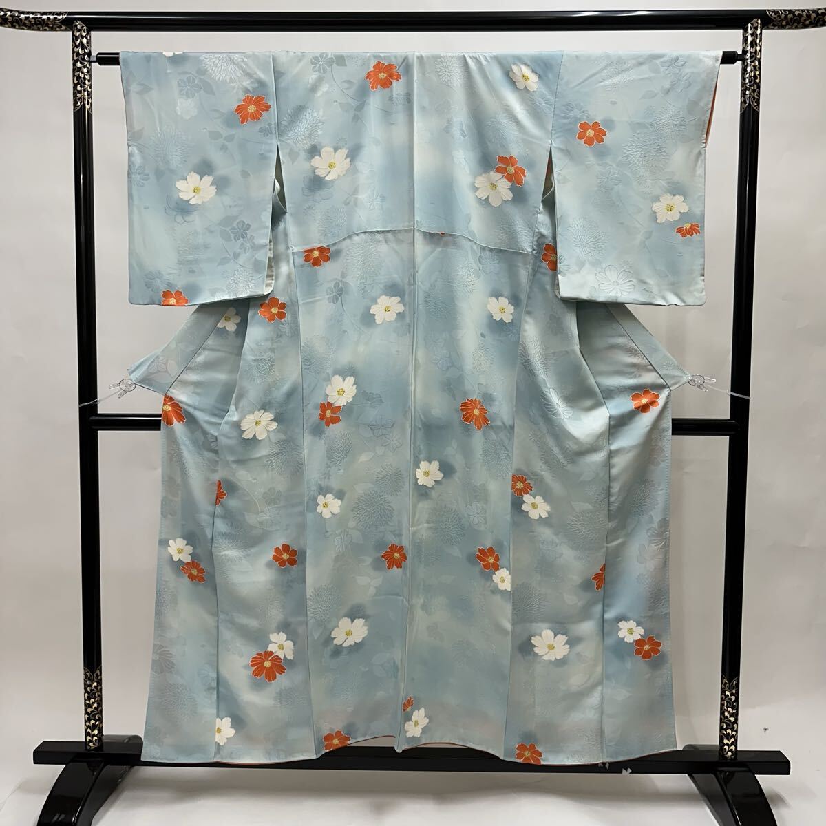 【七福】c739 正絹 小紋 地模様 織花 暗文 地文起こし 袷 着物 仕立て上がり 逸品 身丈 約152.5cm 裄 約62cm