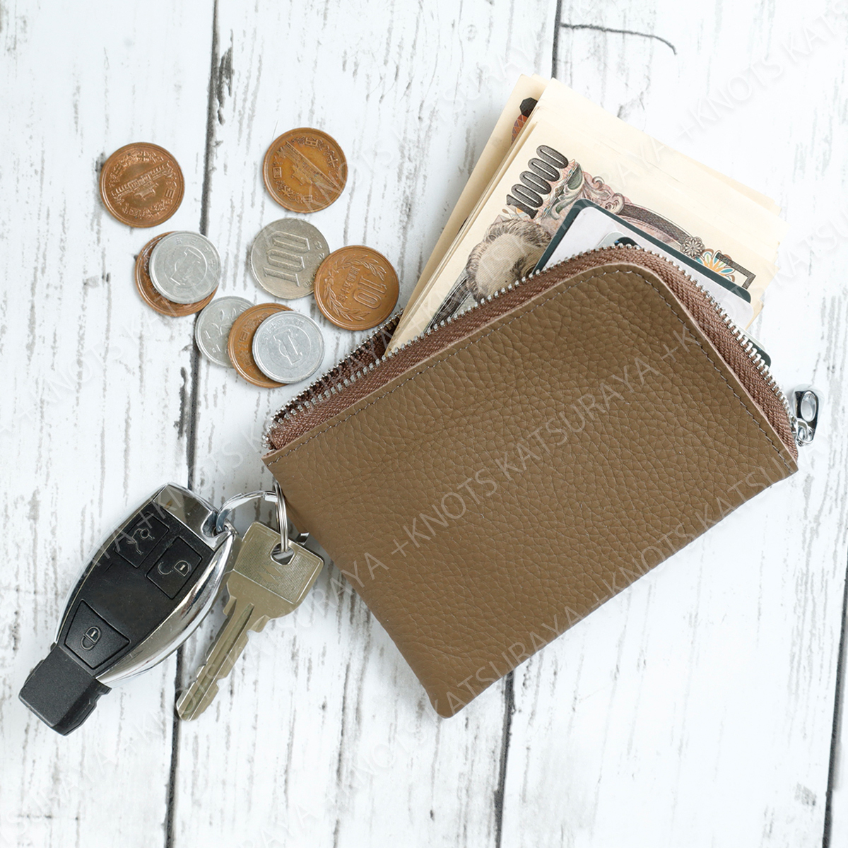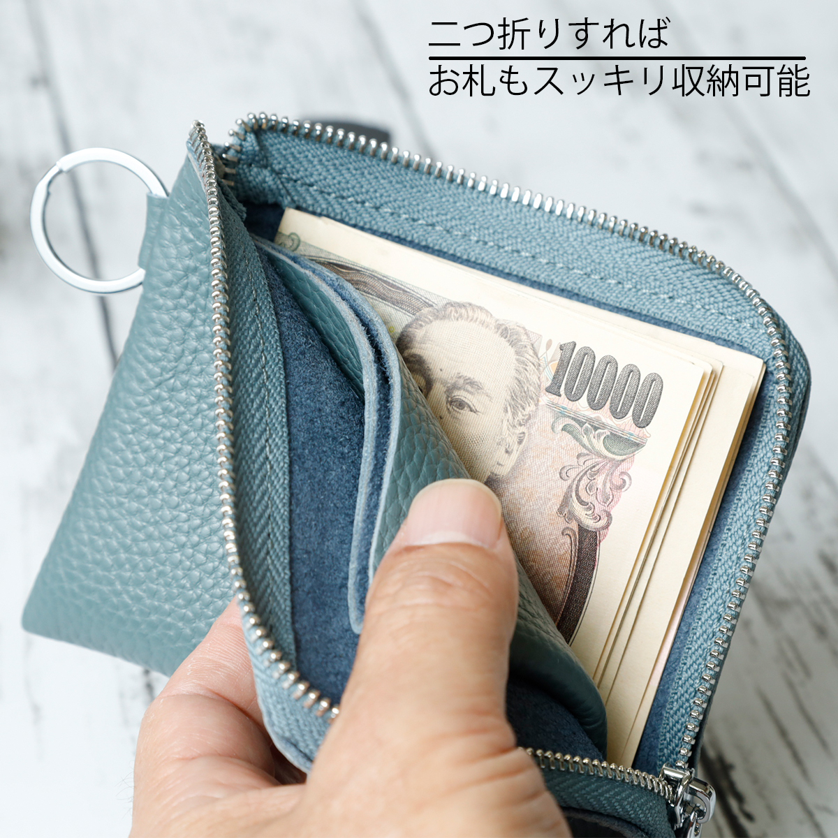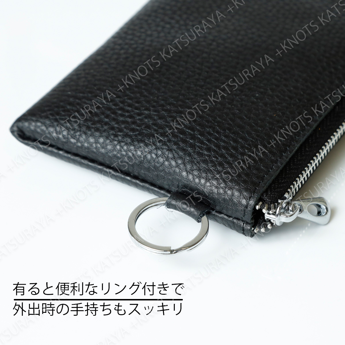 本革 リング付き L字ファスナーミニ財布 レディース メンズ