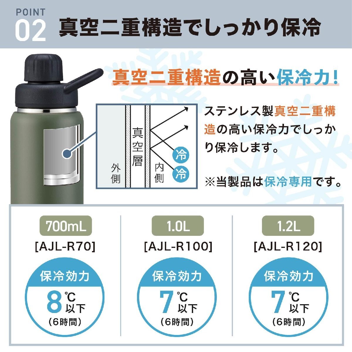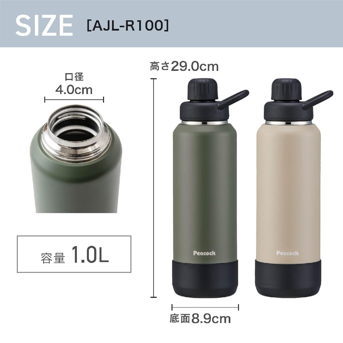 【在庫限りです】【特価】AJL-R100魔法瓶水筒ピーコック1L持ち手保冷直飲みスポーツピーコック魔法瓶工業(The-peacock)Kカーキ炭酸対応
