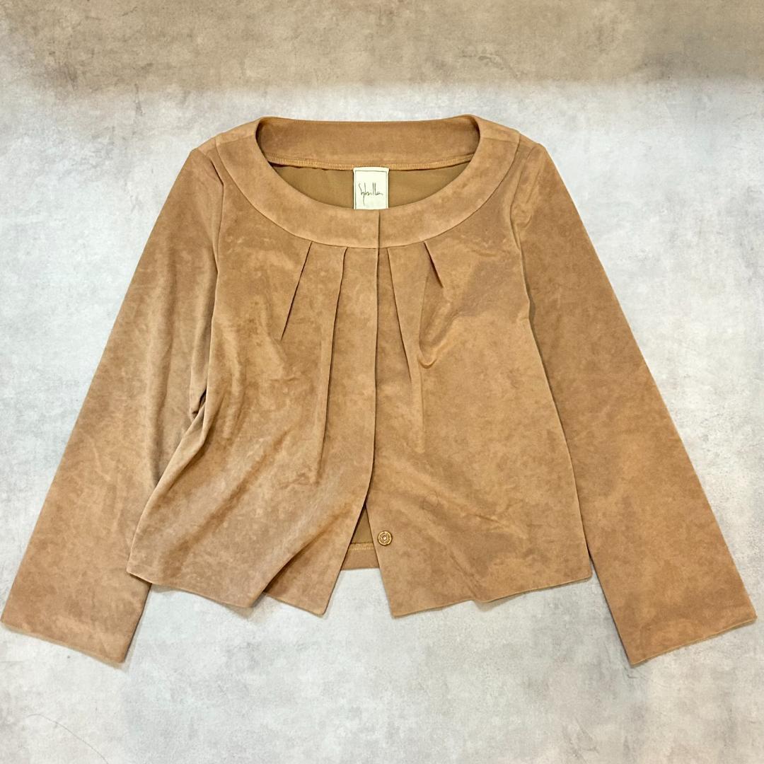 柔らかく高級感のあるスエード調素材を使用した、Sybilla(シビラ)のノーカラージャケットです。
