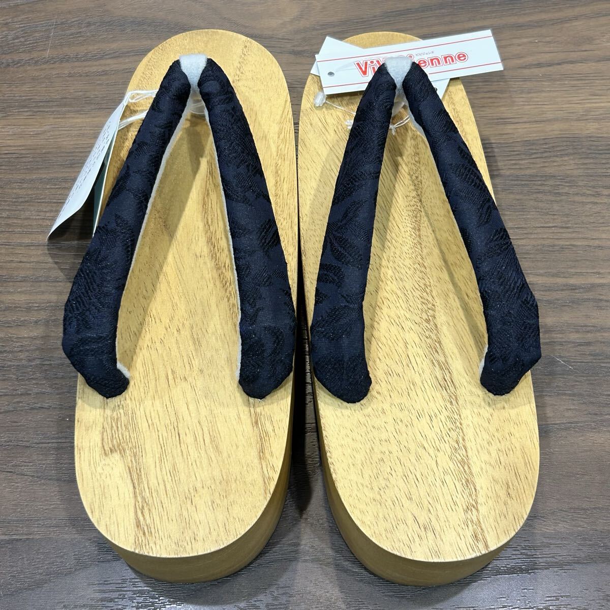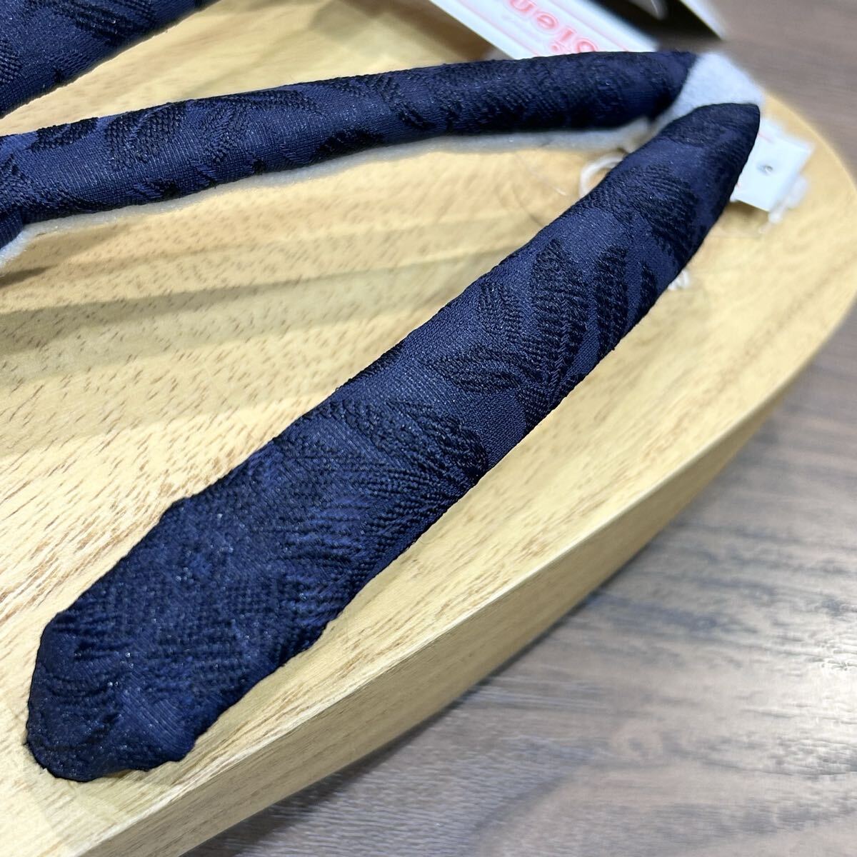 紺色の鼻緒に、リーフ柄のシンプルなデザインです。