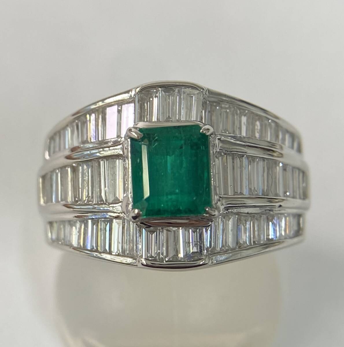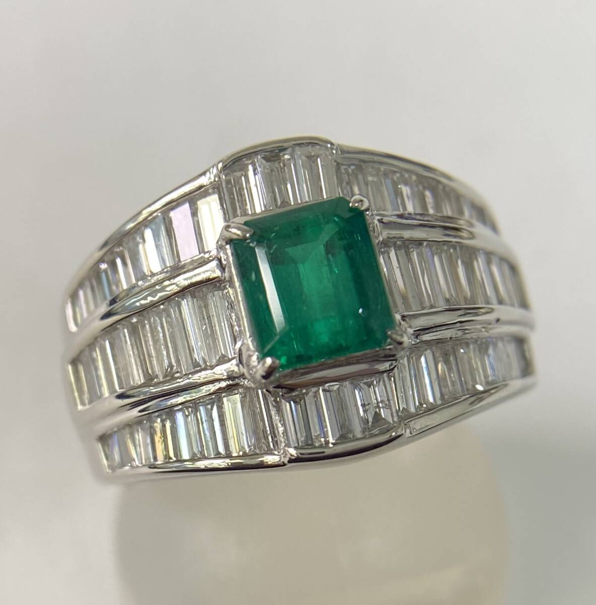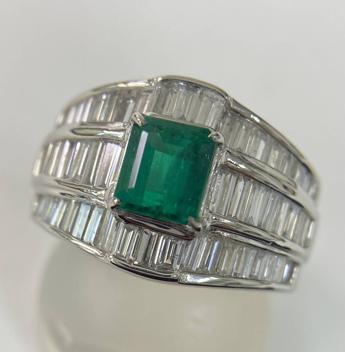 GIA鑑別書 ★コロンビア産 F1★ PT900 天然エメラルド0.93ct 天然ダイヤモンド1.70ct リング 指輪 約15号 約10.0g