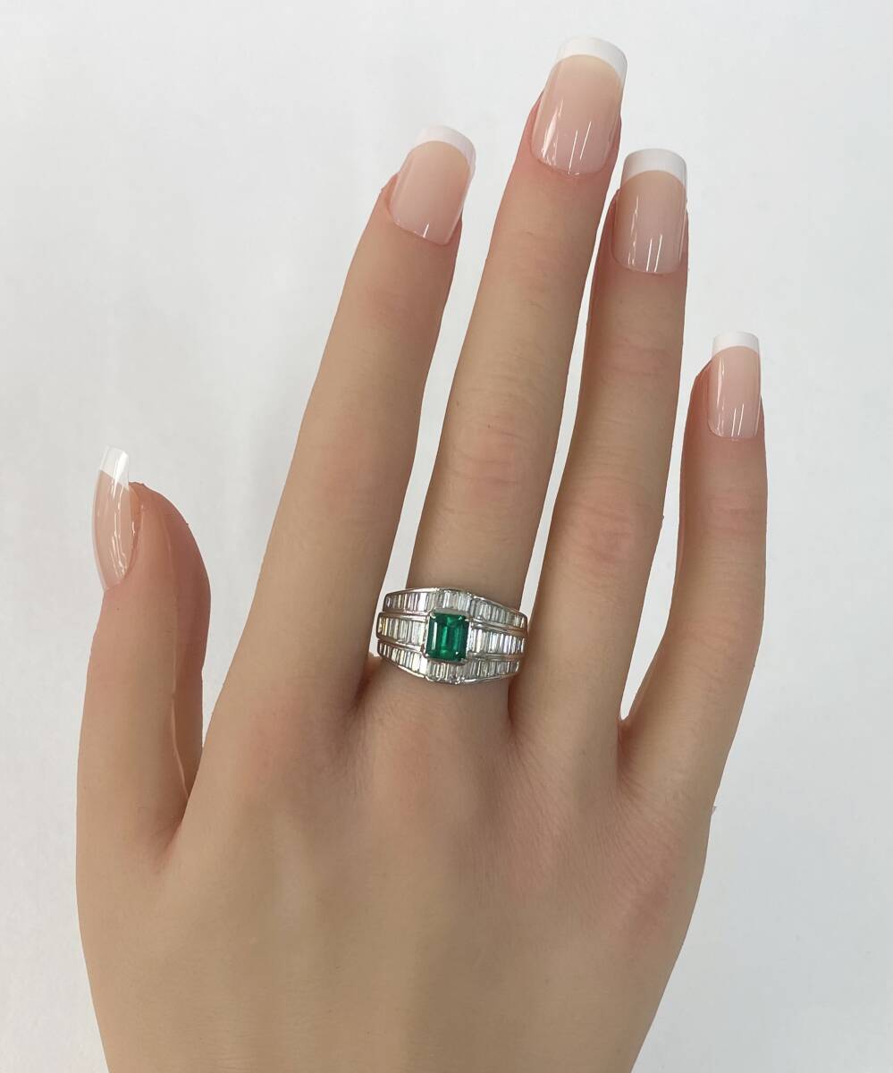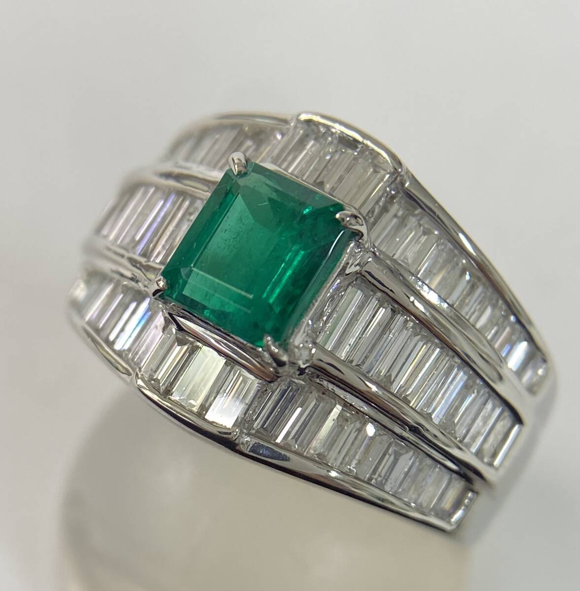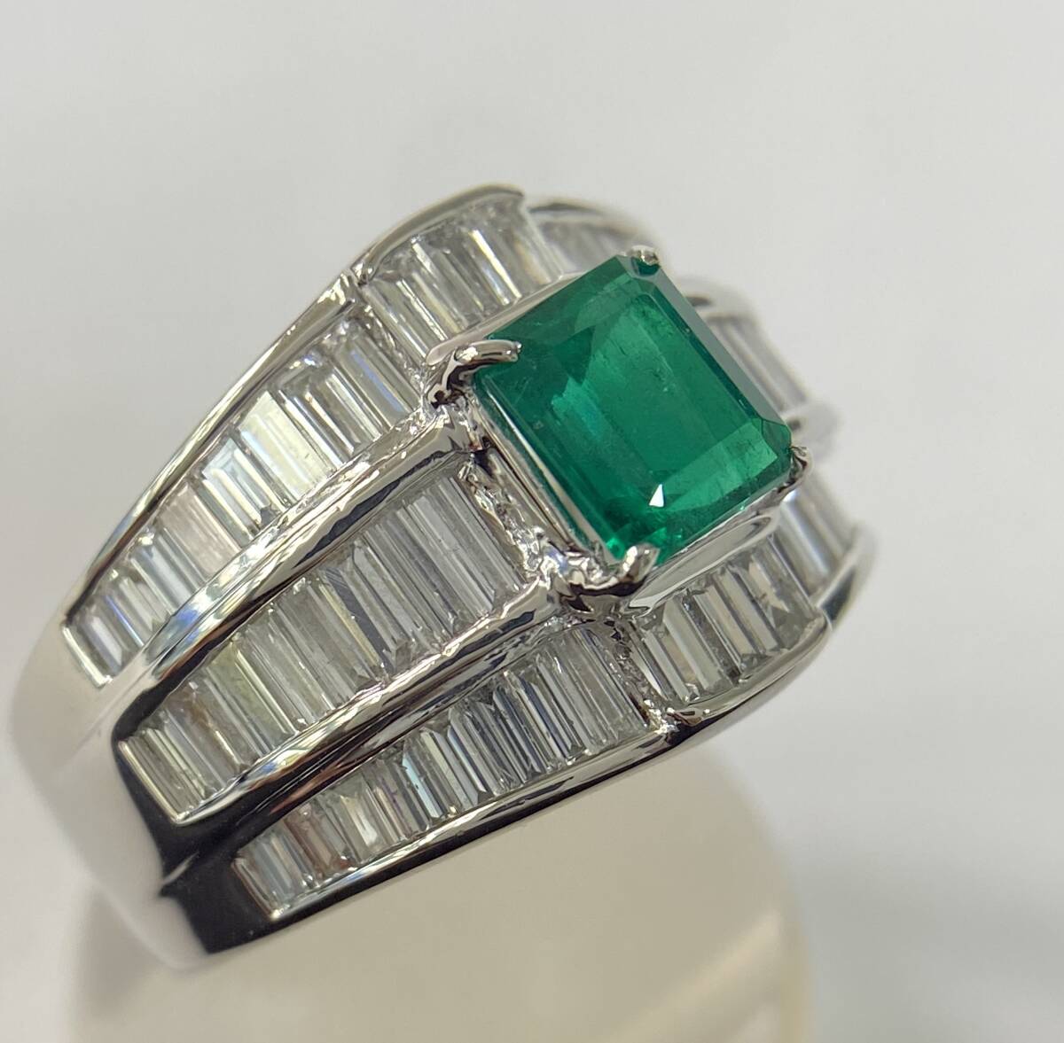 GIA鑑別書 ★コロンビア産 F1★ PT900 天然エメラルド0.93ct 天然ダイヤモンド1.70ct リング 指輪 約15号 約10.0g