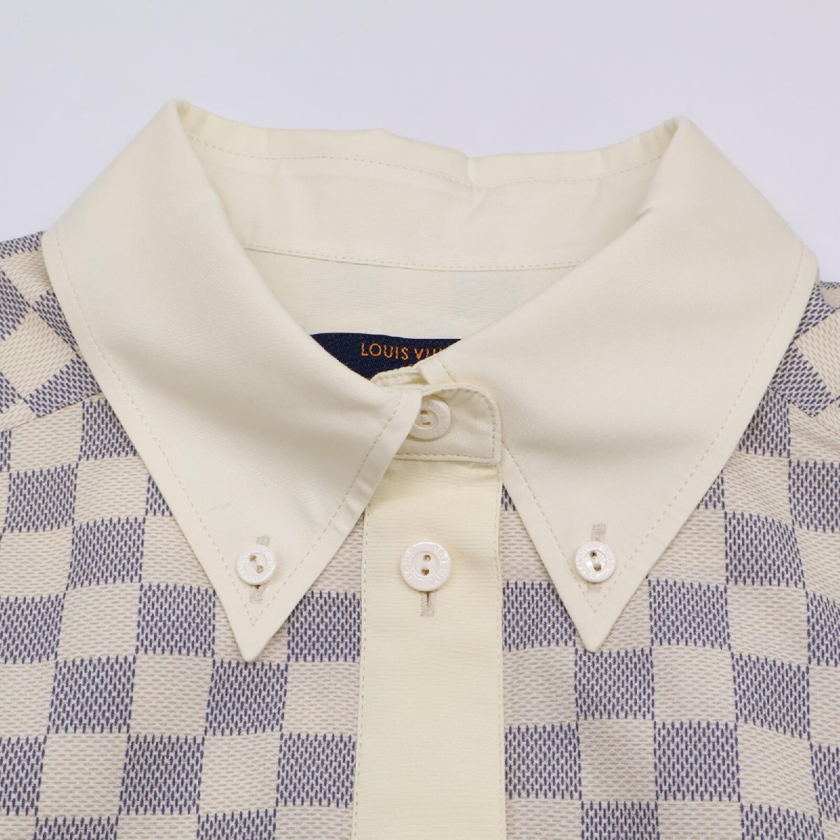 美品/国内正規/22年製 LOUIS VUITTON ルイヴィトン FMBL14 ダミエアズール 長袖ブラウス 34 ホワイト/グレー レディース