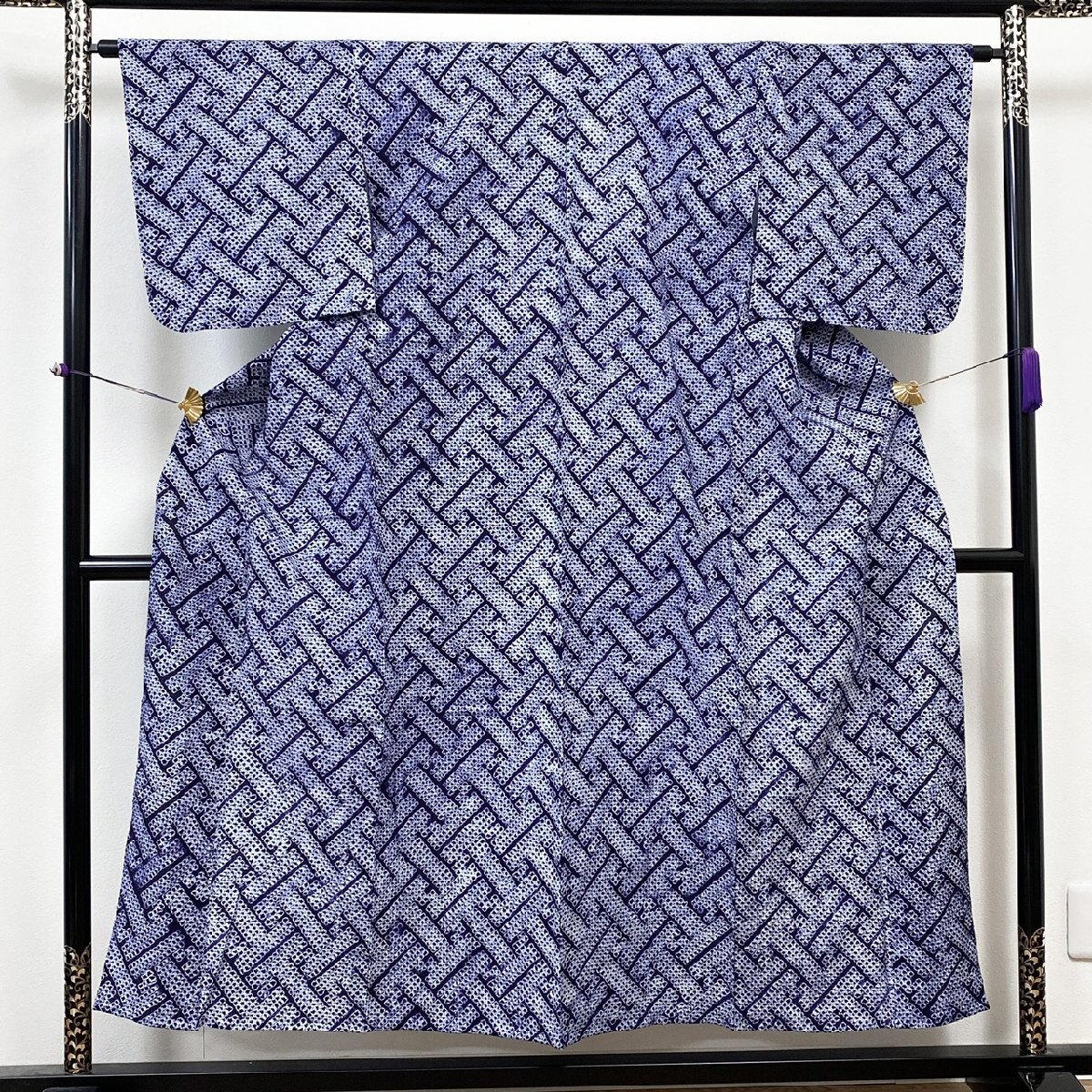着物月花 有松鳴海絞り 浴衣 未使用品 綿 夏着物 バチ衿 居敷当て付き ki5423