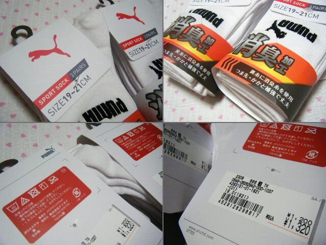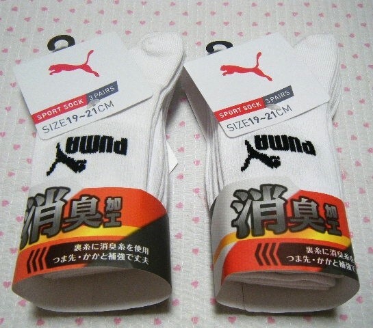 プーマ PUMA SPORT QUARTER 通学&カジュアル&スポーツ用レギュラーソックス 6足 白色 サイズ 19~21㌢ 消臭加工 @ナイガイ販売