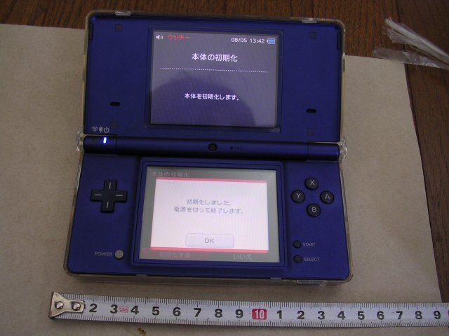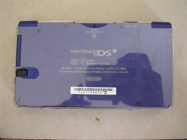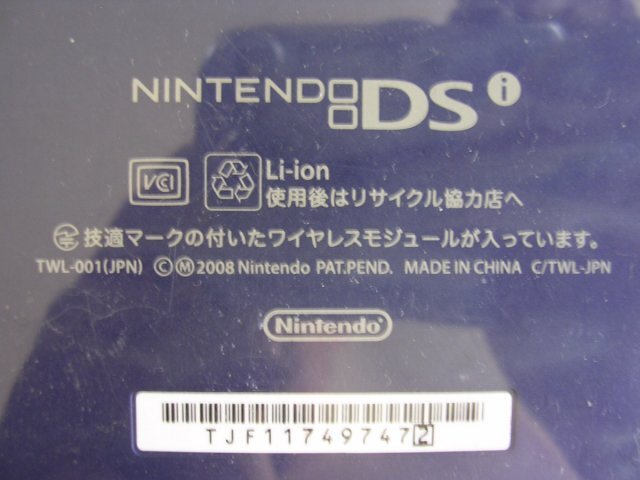 | 商品説明 | ■TWL-001 Nintendo DSi 本体カバー/タッチペン付き 初期化済 ゲーム操作確認品 動くが完全JUNK品 倉庫整理の際に出て来たものです。使わないので出品します。 出品者は使用しておりません。 ■ 出品物 TWL-001 Nintendo DSi 初期化済 本体 タッチペン 本体カバーが上下ともついています 画面にはフィルムが貼られています 以上となります。 書かれていないものについては付属しません。 動作確証としてゲームソフトが映り込んでいますが、ゲームソフトは出品物ではありません。 充電器・ACアダプタはありません。 写真にメジャーが写っている場合、メジャーは出品物に含まれません。メジャーは大きさ比較のために置いたものです。 ■ 商品の状態 出品にあたり、以下のことを確認しております。 簡単な検品を行い、出品時に動くことは確認してありますが、お届け時に、完璧に機能することまで保証することができない完全ジャンク品です。仮に商品状態が変わってしまったり、期待した機能が果たせない状態であっても、ご納得いただける方のみ、説明文をお読みいただき、ご入札ください。 充電器・ACアダプタはありませんので、ご用意ください。 手持ちの充電器で充電を行って、検品は本機内蔵の充電池で行っております。 写真1:先に本体を初期化いたしました。 その確証となります。 本体左のインジケータランプは青で点灯しております。ここから、本機は内蔵の充電池で駆動されていることが示せています。 このあと、動作確認のため、初期設定を行っております。そのため、仮のユーザ名を登録しなければならなくなっています。 お手元に届きましたら、本体起動後に設定より再初期化してユーザ名を入れ直してください。 ゲームの起動操作はできております。 写真3,4に確証をお示ししておきます。 写真6は動作確認に使ったゲームソフトです。 本体で動作しているゲームソフトと一致しております。 (ゲームソフトは非出品物です。) 写真5:本体は上下とも透明のアクリルカバーで保護されております。 カバーを外せば、きれいな状態の本体が出てくるはずです。 また、画面は上下とも保護フィルムが貼られています。 このままでも使えますが、タッチキズが気になる方は、フィルムを貼り替えてください。(110円で貼り替えられると思います。) 写真7:本体裏側です。 本体の左にタッチペンが内蔵されています。 写真9:充電器をつなげれば充電できます。 充電インジケータがオレンジに点灯しております。 写真10:充電器をつなげながら、本体を使うこともできています。 青オレンジともに点灯しております。 wifiはwifi設定をすれば使えると思いますが、ここは確認しておりません。 使えている状態ではありますが、なにぶんにも古いお品物です。 製造から15年以上もの年月が経過しております。 どこに劣化が来ているかはわかりません。 出品者として保証することもできないので、完全ジャンクでの出品です。 ジャンクとは「ゴミ」「がらくた」「不良品」「不具合品」という意味です。出品者はいっさいの責めを負わないことを条件に、ご入札をお受けいたします。ジャンクにクレームを言われますと、世間様の笑いものになります。 出品者にいっさいのクレームや要求をされないことを条件に、ご入札をお受けいたします。クレームを言うかもしれない、という方は、入札されないでください。お取引上のお約束です。(ここまで書いても理不尽な要求をする、やくざものに遭遇しましたので、しっかりと記述しておきます。) (配達後に、「スロットカバーのゴムが取れた」とクレームを言ってくる人がいるんです。取れていない品物ですることは、写真でも示していて、明らかに配達後のことなのですが、こんなことまでクレーム言われたのでは、中古品出品なんかやってられません。) このようなお品物です。 動作していることはきちんと確認を行い、その確証を写真に記録してお示ししております。「動作確認済み」の言葉だけで出品する、いい加減極まりない出品者が多数生息しております。「ほんとうに」確認しているのであれば、その確証を示すべきです。どこに難しいことがありましょうや? それをしないのは、出品という行為を舐めています。また、入札者も舐められています。「この通り動いていますので、安心してご入札ください」とするのが、出品の基本ではないでしょうか? 顔の見えないお取引ですので、動作確証については、こと厳格になるべきです。動かないものが送られてきたら、どうしますか? 確証がなければ泥仕合になりますよ。 いい加減な出品者は、商品説明もいい加減です。状態や動作の説明をまったくしていないものもありますが、そんな商品を買いたいと思いますか? 以上のみ確認しております。書かれていないことについては、確認しておりません。また、確認はごく短時間にとどめてあります。長時間のテストや反復テストは行っておりません。 書かれて