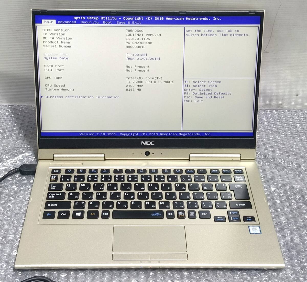 外観破損 、NEC PC-GN276W1AA Core i7-7世代 8GB 13.3インチ ジャンク4501
