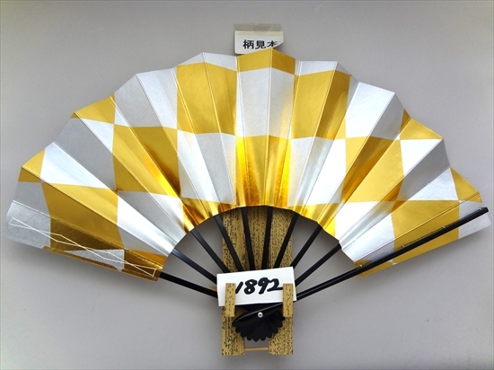 舞扇子 A1892 金箔市松模様 銀地 【箱なし】