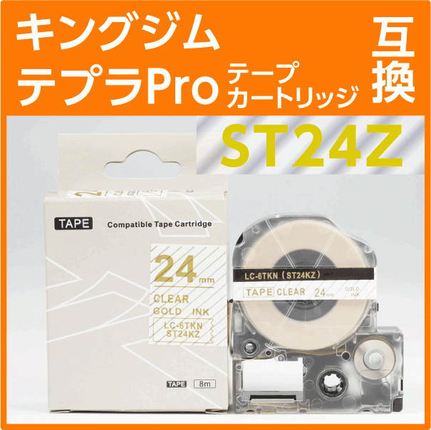 キングジム テプラPro用 互換 テープカートリッジ ST24Z〔強粘着〕24mm 透明地/金文字