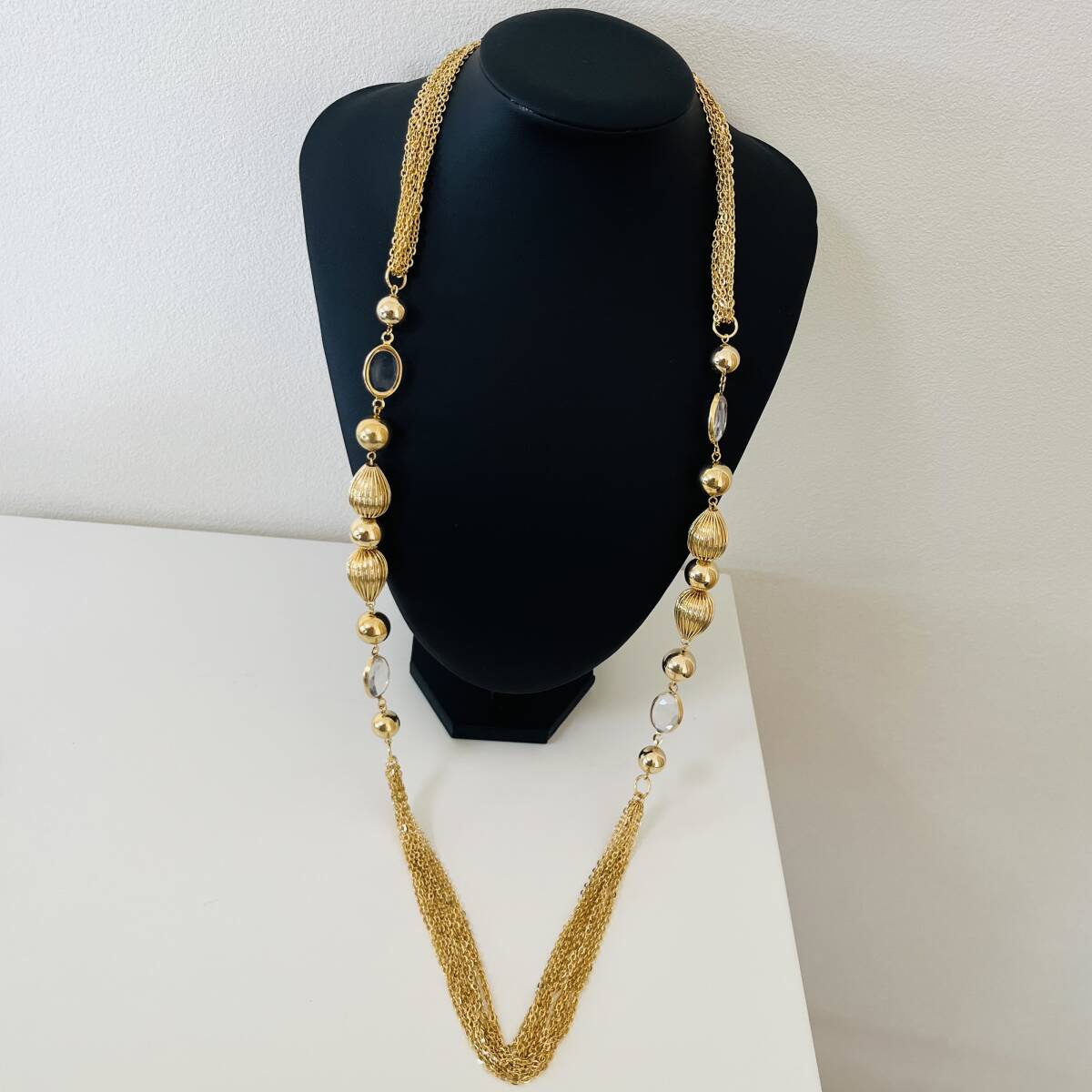 230 アンティーク ビンテージ コスチュームアクセサリー ネックレス 未使用保管品!ゴールドカラー ゴージャス ロング 海外製 華やか キラキラ