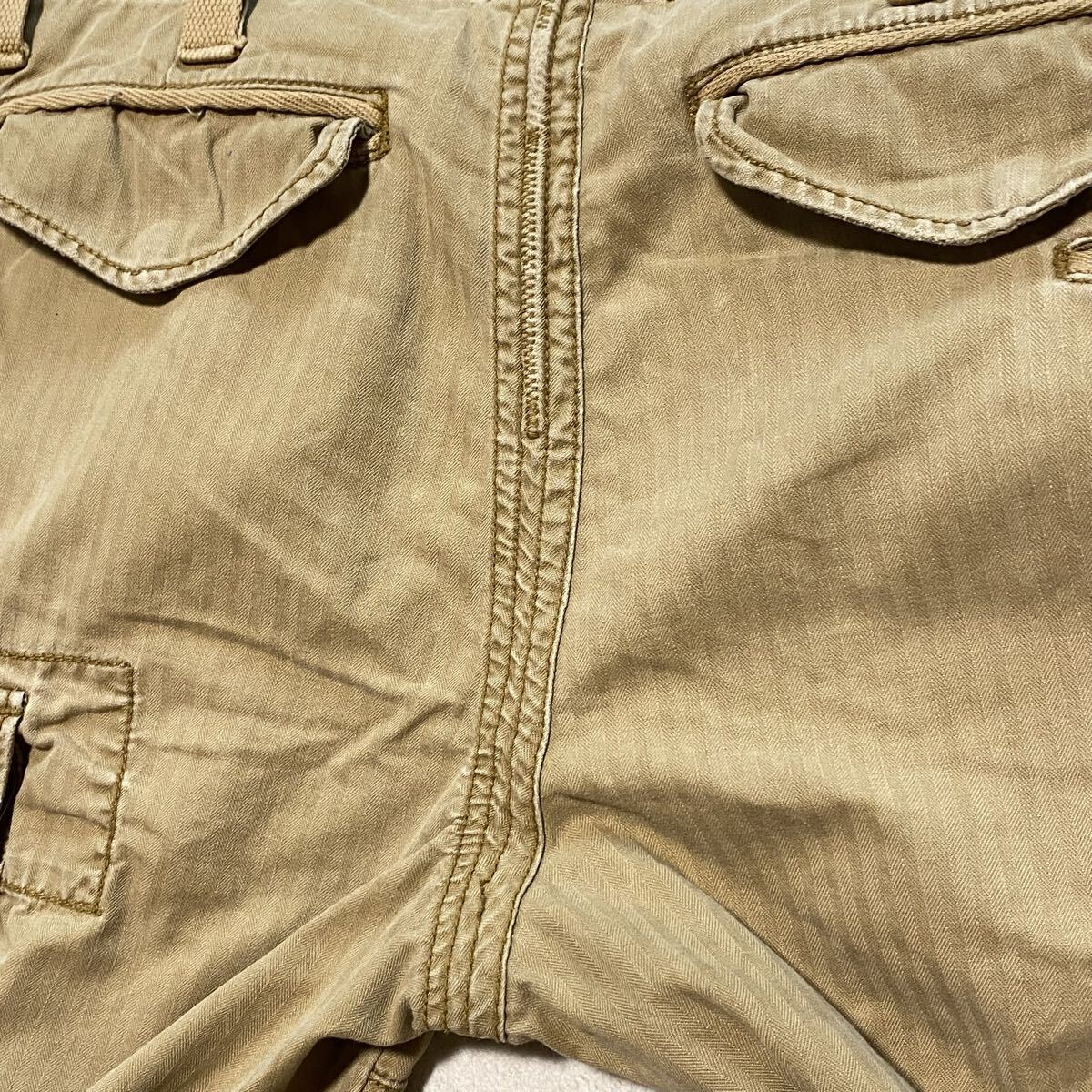 米軍 M-65をベースに、ヘリンボーン生地、多くのマルチポケットが追加されイギリス軍のテイストも加わったラルフローレン独自のアレンジが加わった拘りの作りの1本です。スッキリとしたキレイなシルエットです。