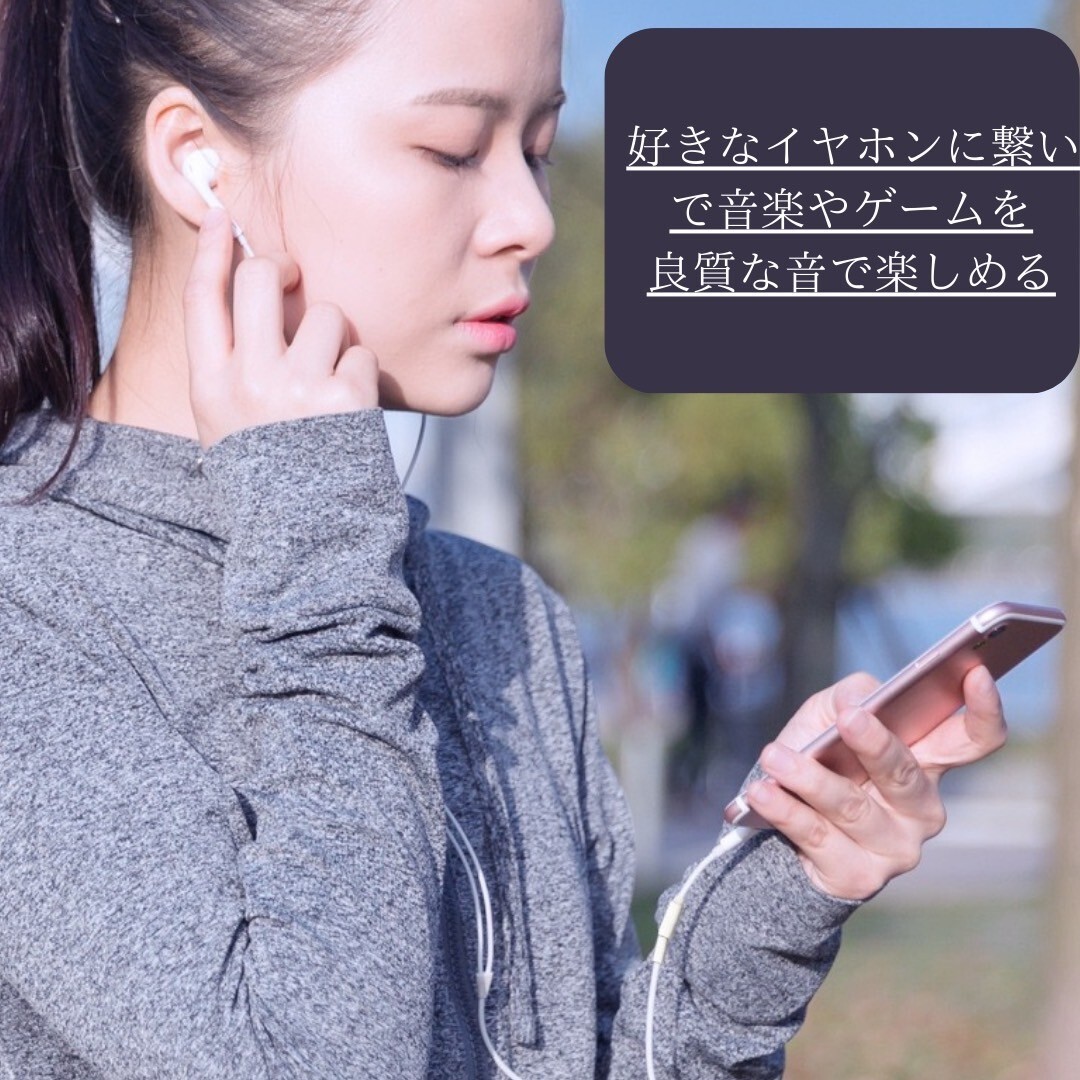 Type-Cから3.5mmメスコネクタへの変換で、スマホのオーディオ信号をヘッドフォンで堪能。