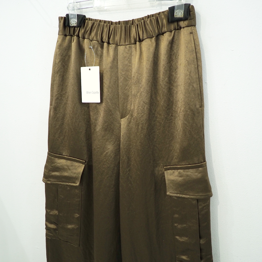 新品 定価26400円 ウィムガゼット 24aw サテン イージー カーゴ パンツ カーキ 36 レディース M L XL S Whim Gazette ゴム ドロスト 光沢