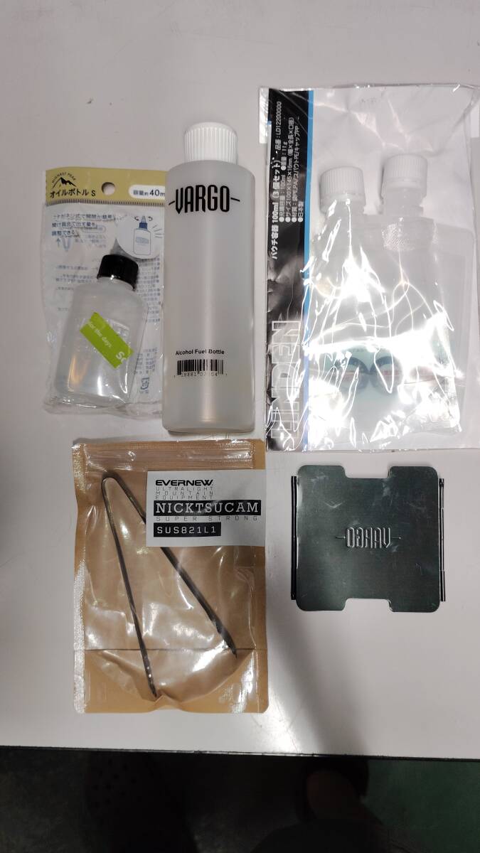 | 商品説明 | 大掃除と断捨離を兼ねて、今後使用する可能性の低いものを出品しております。 ■ Vargo バーゴ アルミニウム ウインドスクリーン ブラック 使用時全長:8.1×41.6cm 折りたたみ時サイズ:8.1×8.8cm 重量:135g 数回使用しましたが、特に目立つダメージはありません。 状態は写真でご確認ください。 ■ Vargo バーゴ アルコールフューエルボトル 240ml サイズ:D51mm×H165mm 重量:29g 燃料用アルコールを入れて数回使用しましたが、特に目立つダメージはありません。 状態は写真でご確認ください。 ■ Linden リンデン 燃料用アルコール小分け袋 パウチ容器 100ml 2個セット パウチボトルタイプ 容量:100ml *袋は3個セットの表記ですが、お送りするのは「2個」セットになります。 新品未使用品2個 ■ セリア オイルボトルS 40ml 容量:40ml 新品未使用品 ■ EVERNEW エバニュー NICKTSUCAM (ニクツカム) 材質:ステンレス 色:ブラック サイズ:123mm 質量 ::9g 新品未使用品 一部、中古品であることをご理解いただける方のみ入札をお願いします。 ※注意.1 ↓ その他商品との同梱はできません。 複数落札いただいた場合には、商品毎に送料ご負担いただきます。 ※注意.2 ↓ 送料は別途ご負担いただきます。 佐川急便/ヤマト運輸(元払い)で発送致します。 その他発送方法は対応できません。 ※注意.3 ↓ お支払い方法は、かんたん決済のみとなります。 落札後、24時間以内の送付先連絡、48時間以内のご入金をお願いします。 上記、時間内のご対応をいただけない場合、落札者様都合でキャンセル処理致します。 以上、よろしくお願い致します。 | |
