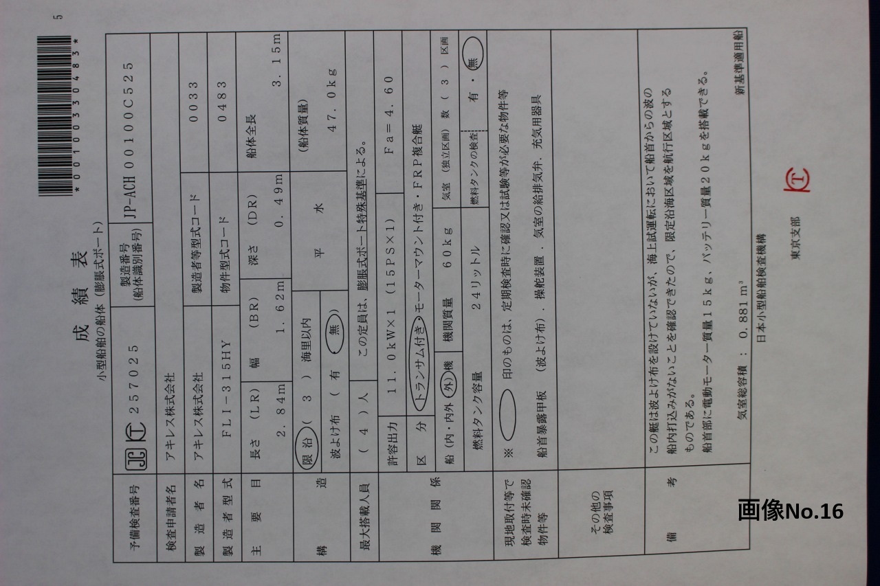 ☆2023年ネット販売実績21艇、2024年ネット販売実績15艇!!(函館店単店のみでの実績数値。また店頭販売分は別途実績あり)と、性能、人気共に非常に高いパワーボートです!☆ ※最大15馬力エンジンまで搭載可能!ボートフィッシングに特化した様々な機能が標準装備!1ランク上の、上級モデル艇! CSM製 、エアフロアタイプの全長3.15m規格で15馬力対応のパワーボートは、アキレス総合カタログにもありません!(当社とアキレスの共同開発によるこのオリジナル艇のみ!) ※ただし2馬力エンジン搭載であれば免許不要で使用する事も出来ます(全長は3.15mですが、トランサムまでの長さは3m未満につき) ※今回出品の艇より、若干仕様が変更となった、 FLI-315HY(Ⅱ)2グリップモデルとなります。(ボート前面の持ち手が2つのモデルとなります。画像No.1~2参照) 今シーズンに入荷した、2025現行モデル艇(未開封)商品です。※2グリップ仕様に変更となった、 FLI-315HY(Ⅱ)。 入荷後は、倉庫内にて保管していましたが、この度出品にあたり初めて開封、エアの充気等行いました。 展示にも使用した事がない、全くの未開封ボートでしたので、状態としては非常に良いと思います。 (商品チェックの為に、開封後、エアの充気を行っています。その作業過程で、若干の擦れや汚れが付く可能性がありますが、その点はご了承願います)。 また、ボートには一部白い粉の付着が見られますが、生地の癒着防止の為に、予めメーカーにて塗布してある粉になります。汚れ等ではありませんのでご安心下さい。他、細部につきましては画像にて確認お願いします。 ボートは画像撮影と確認の為、エアも満タン状態にてチェック行いましたが、不具合は現状ありませんでした。(画像のようにエアを充気し、48時間以上エア漏れチェックを行ってから出品しているボートになります。) 希望される方には、2025アキレスカタログ同送致します。落札後にその旨お知らせ下さい。 ※こちらのボートの特徴として、バウ部分にモーターマウントが装着可能であり、標準装備で付属しています。(画像No.1、2参照) モーターマウントは、船外機はもちろんの事、表差し舵にも使用出来る為、多様な用途に対応可能です。 竿掛けや、艤装品を取り付けるのに便利な竿掛けモールドも、標準で4か所付いていますので、とても便利です。(画像No.1、8が確認しやすいと思います) リフティングハンドルがチューブ後端(スターン)部に付いてますので、移動や持ち運びがとても楽です。(画像No.5参照) 特にスターン上部に付いているベルトグリップは、両手で持つ時の手の長さを考慮してくれているので、女性でも安心です。 (このベルトグリップはボート全体合計で7か所に装備されています) ボート底面(スターン下部)に、2本の青い大型フィンを装備していますので、直進性の向上や、横流れの防止、また船底の擦れ防止にも活躍します。(画像No.7、9参照) この大型フィンは、アキレス総合カタログ掲載の他の艇には装備されていない、当社とアキレス共同開発ボートのみのオリジナルアイテムです。(2025アキレス新発売の2馬力専用艇、RDS-280に一部採用となりました) また船底中央部には、中空構造V型スタビライザーも採用されていますので、大型フィンとのW効果で直進性の向上、横流れ防止、擦れ防止にもなり、船底をキズから守ります。(画像No.9、10参照 船底中央部の黒いモールドスタビライザーです) そして最後になりますが、元々ボートの前面に付いていた、移動に便利な持ち手のベルトが、これまでの1つから2つに仕様変更となりました。(画像No.1~2参照) ※両手で扱えるようになりましたので、これはとても便利です。 FLI-315HYには、ボートの移動や運搬に便利な、アキレス ボートドーリーNK(ノンパンクタイヤ仕様 税込58300円)を装着可能ですが、脱着をワンタッチで行う為のアルミ固定ベースも、トランサム部に2ケ標準で装備されています。(画像No.6参照) このアルミ固定ベースに※別売のボートドーリーのブラケットを差し込んで固定すると、画像No.12のようになり、ドーリー(タイヤ)を使用する事が出来るようになります。(※タイヤは別売ですのでご注意下さい) ※通常ですと移動の為のタイヤ(ドーリー)を購入された場合、ボートへの取り付けは、購入された方がノギスで測ったり、ドリルで穴開け等をして取り付けを行う必要があります。(取り付け位置がずれるとチューブに擦れたり、工具の無い方は別途購入の必要も出ます) その点、こちらのボートは製造元のアキレスにて、予め固定ベース金具の取り付けを行ってもらっている機種となりますので、とても安心です。 ※タイヤ(ボートドーリーNK)をご希望の方には、同時購入特典として、落札金額に+33000円でお出しする事が可能です。 タイヤ(ボートドーリーNK)の詳細については、画像No.13のカタログ画像参照下さい。 ボートとの同時発送にて、タイヤの分の送料もサービス出来ますので、タイヤのご希望があれば落札後にその旨お知ら