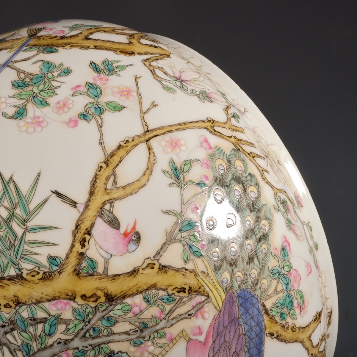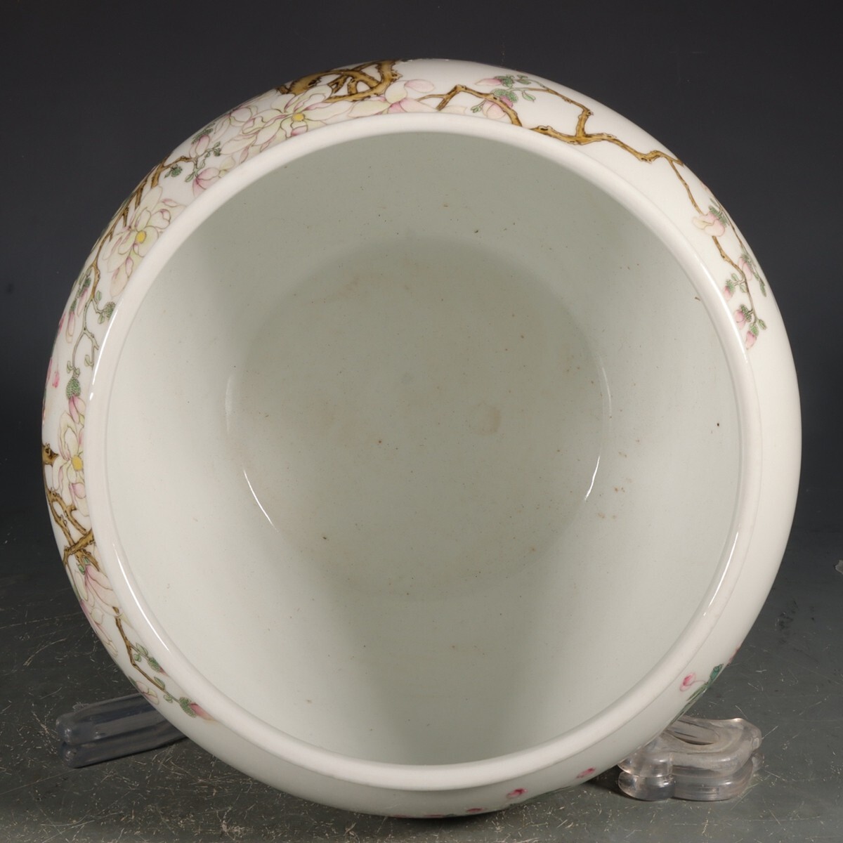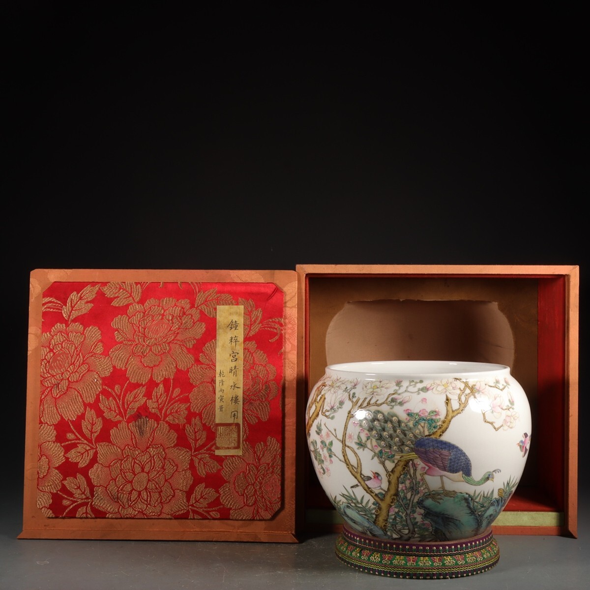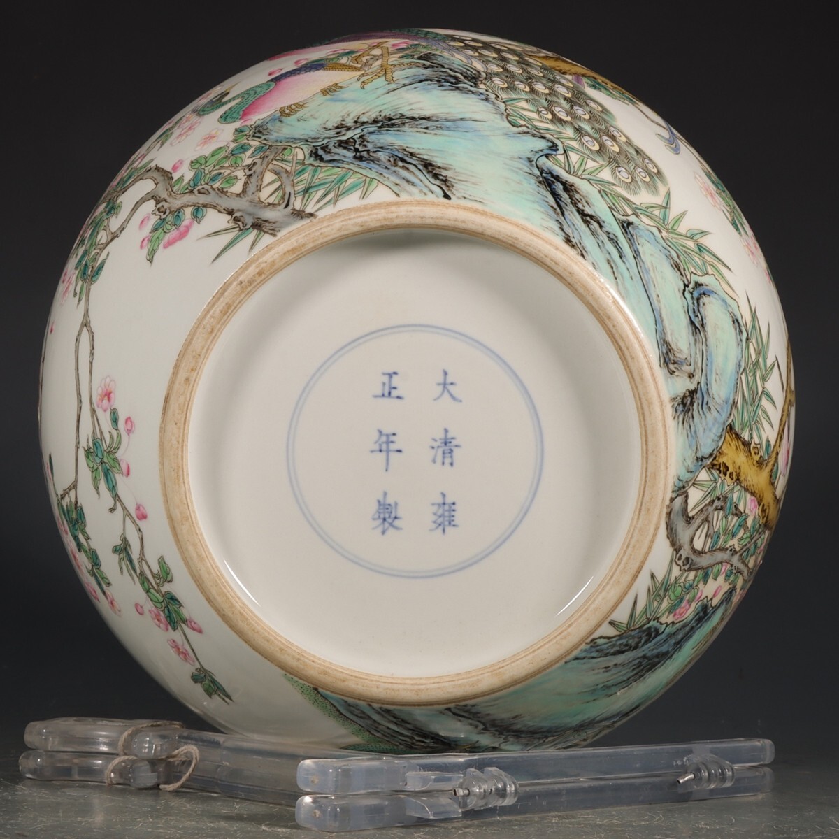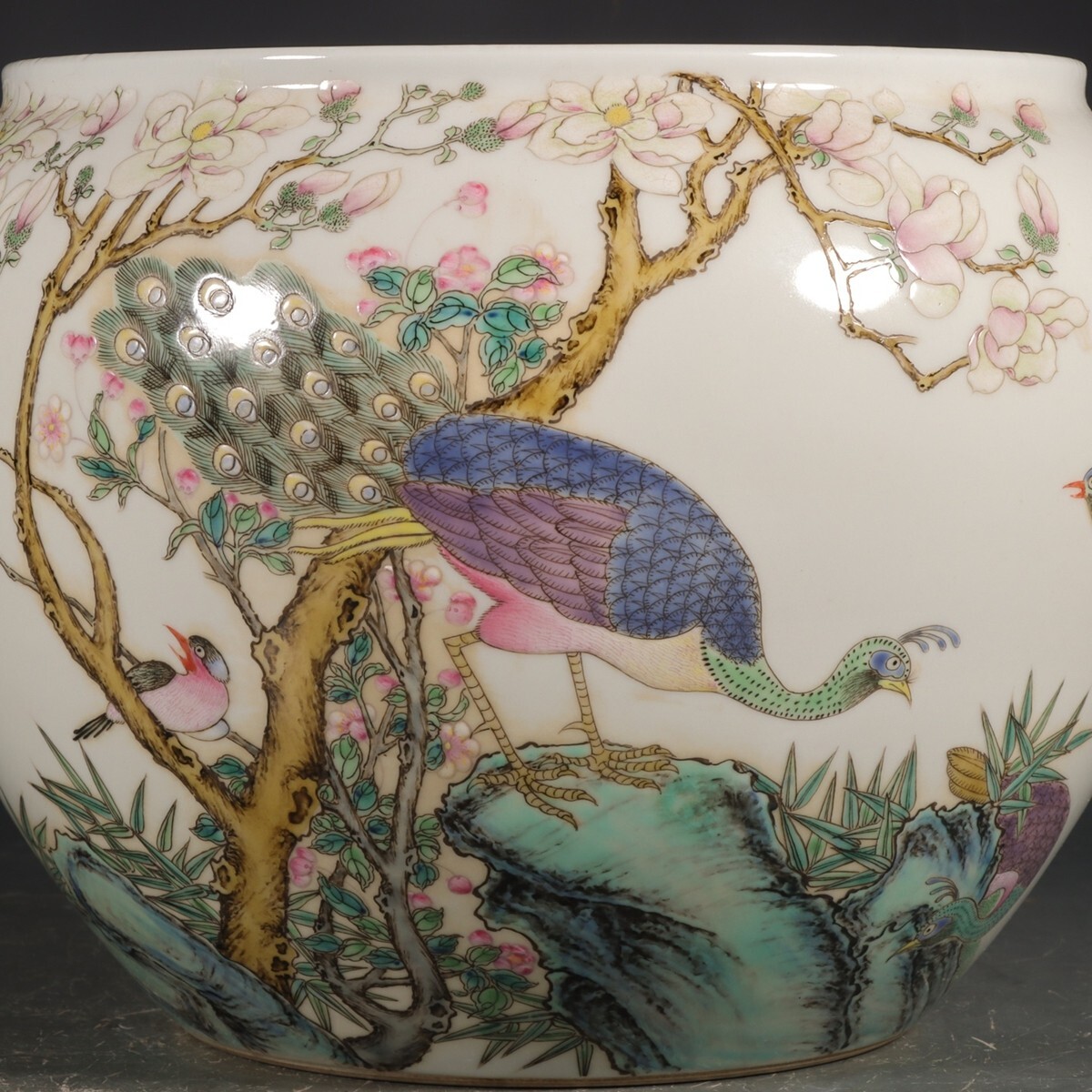 「清 乾隆年製 陶磁器 粉彩花鳥紋 缸」染付 置物 擺件 古賞物 中国古美術 旧蔵出