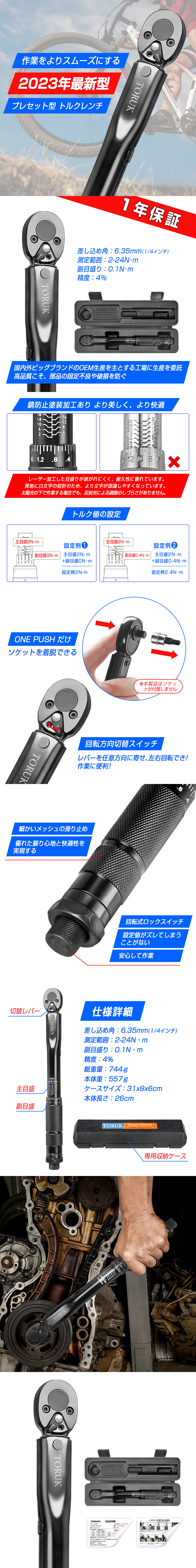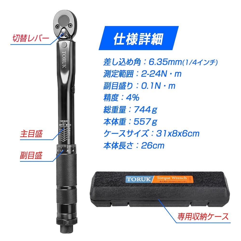 トルクレンチ本体、差込角:6.35mm 測定範囲:2-24N・m