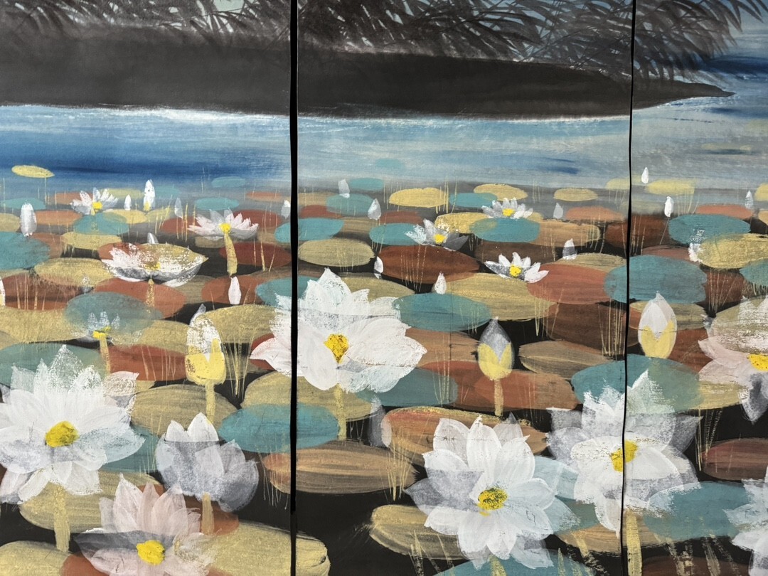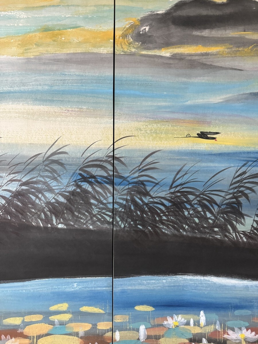 中国書画「林風眠 山水花鳥風景図通景」肉筆紙本 掛け軸 墨寶妙品 書画横軸 巻き物 古美術 旧蔵出