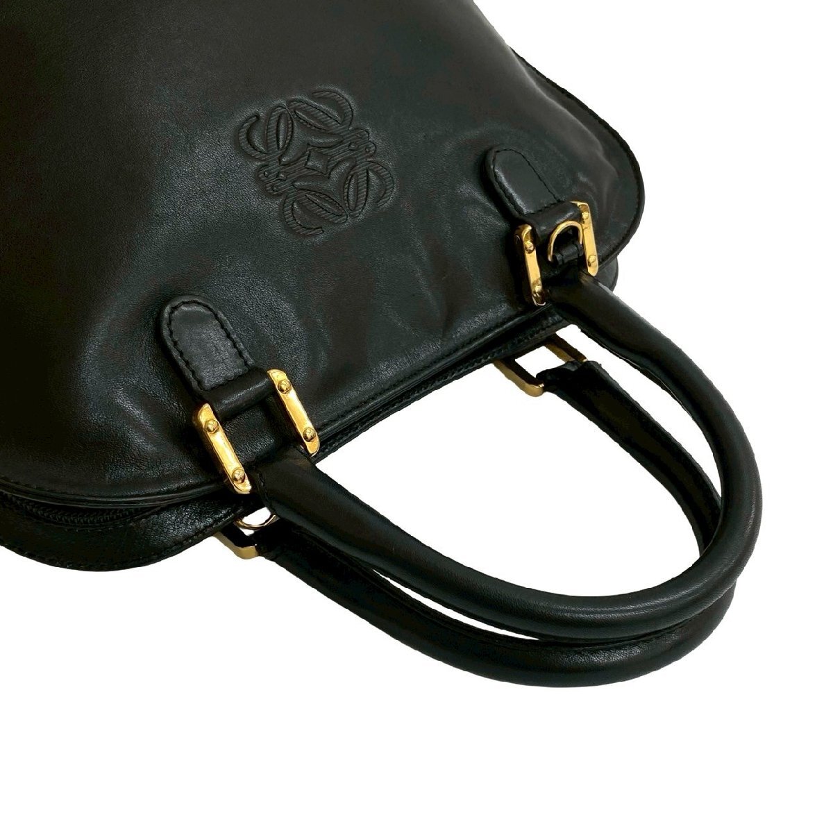 極 美品 LOEWE ロエベ ヴィンテージ アナグラム エンボス ロゴ レザー 本革 ハンドバッグ ミニ ボストンバッグ ブラック 黒 47978