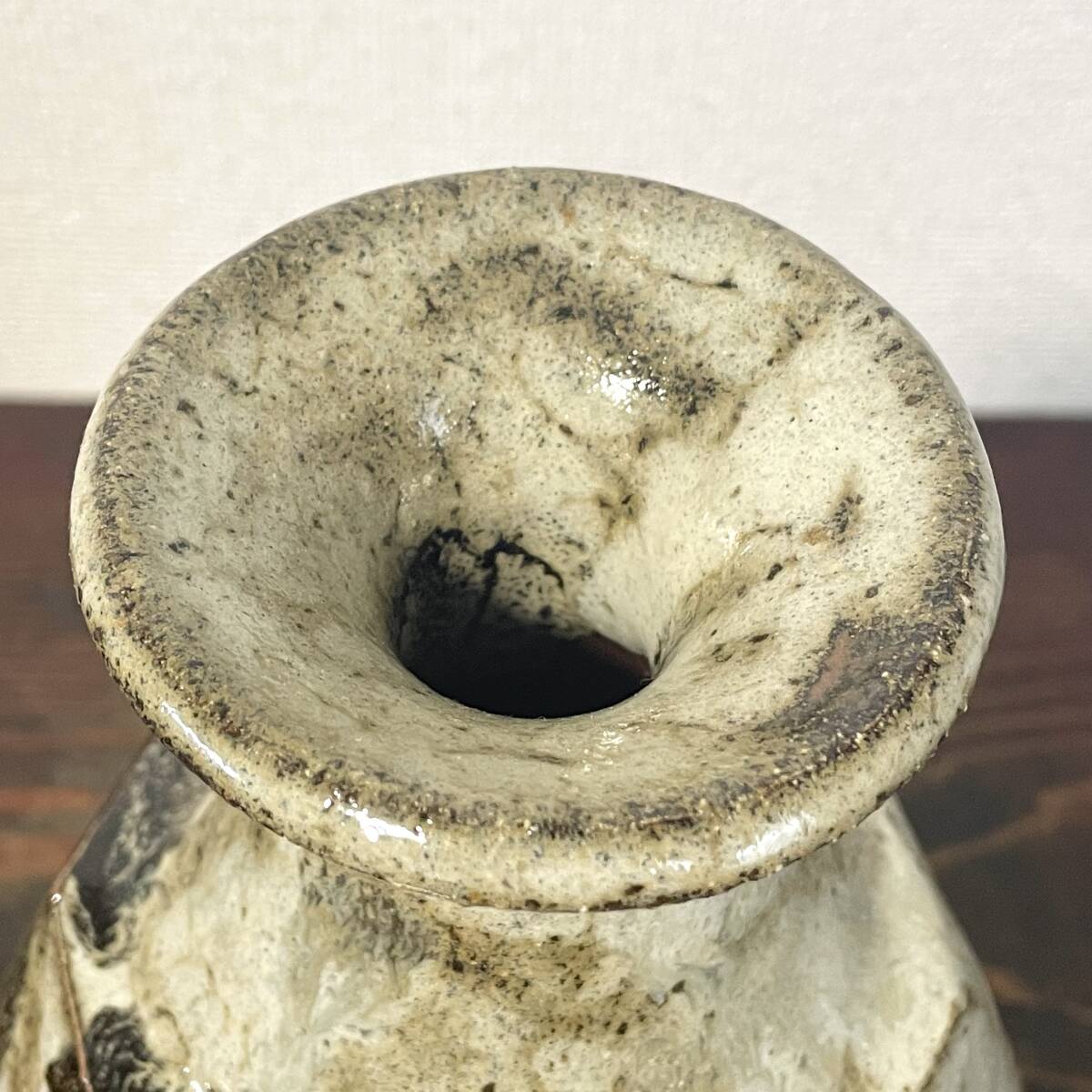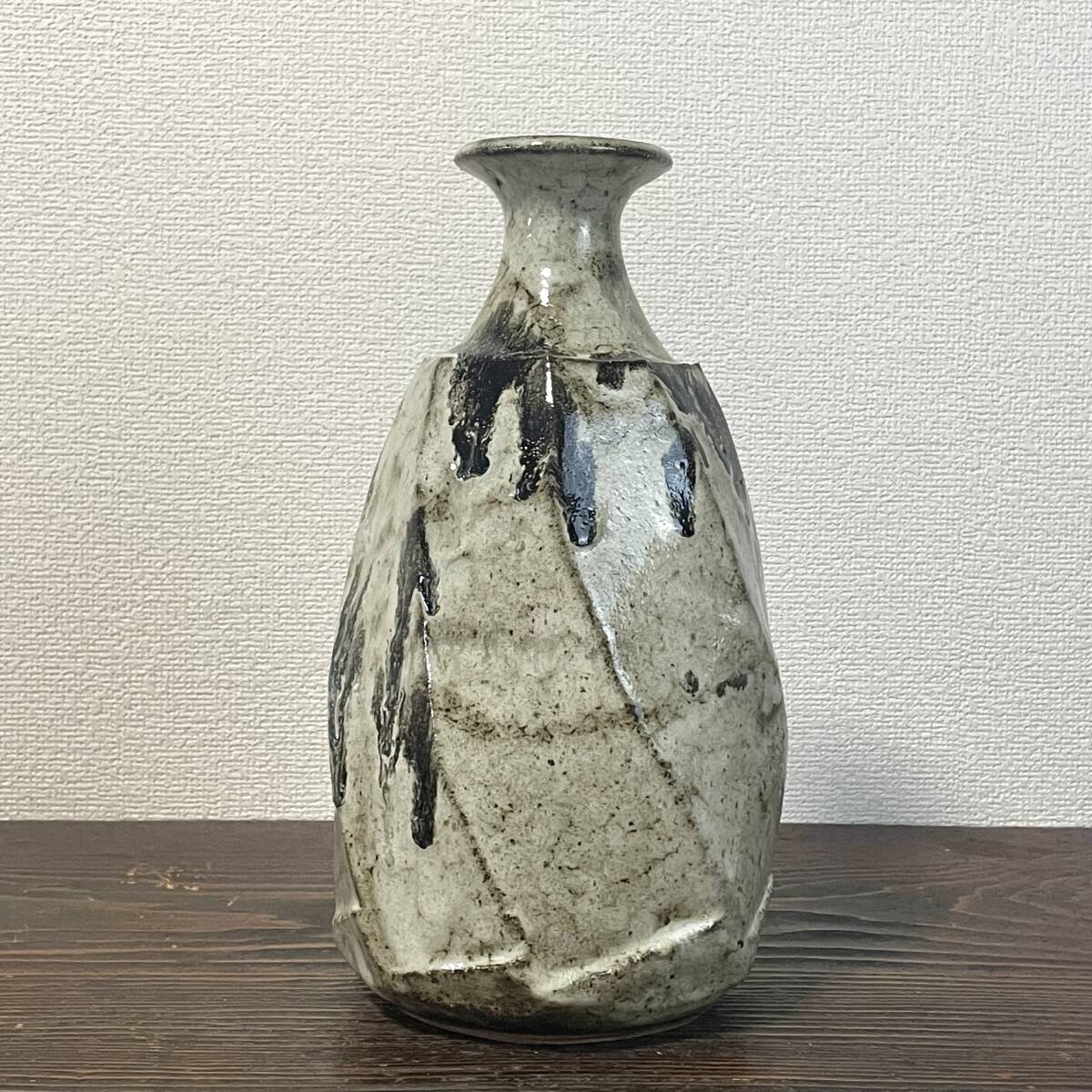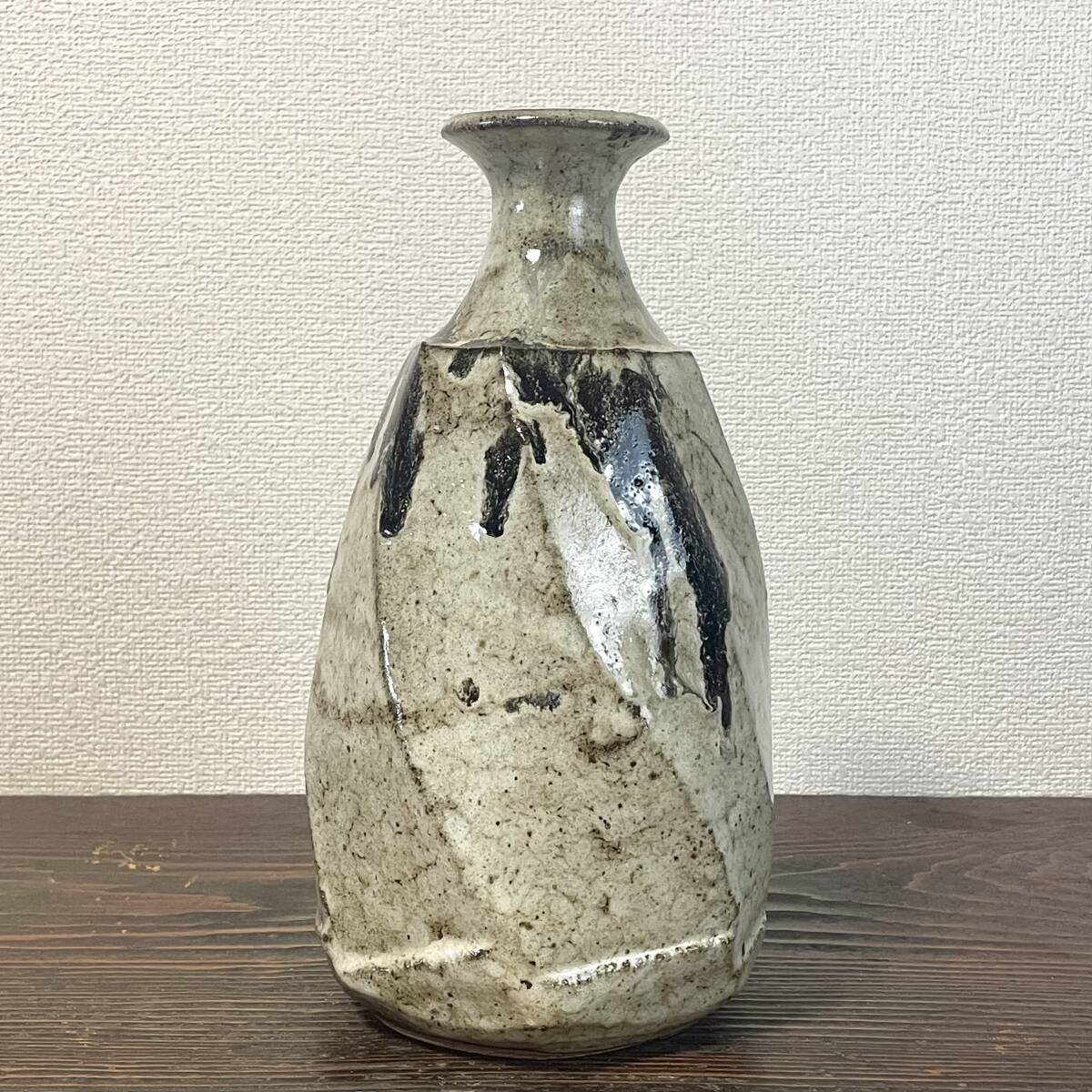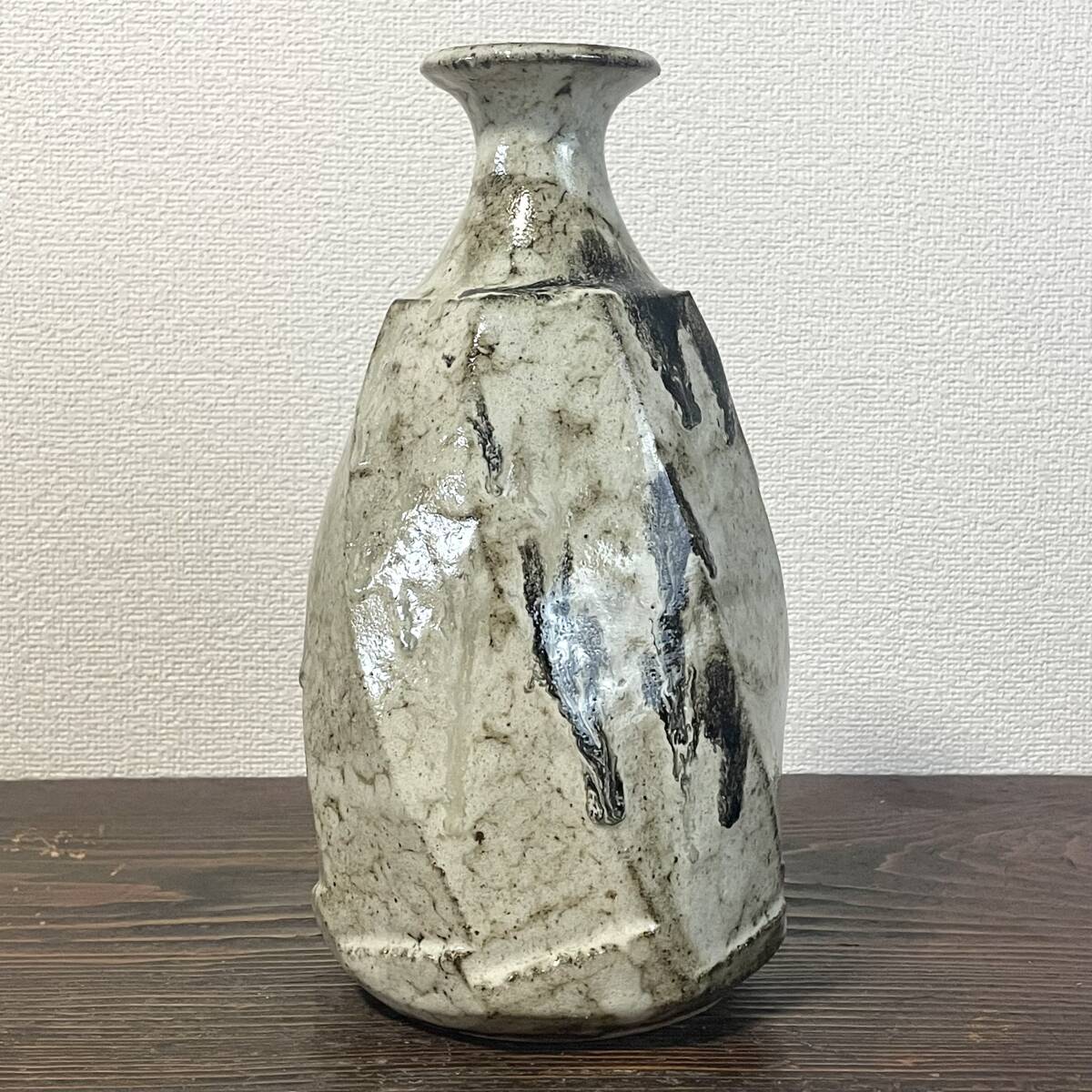 民藝 白釉 重厚な面取壺 糠釉 黒釉掛け 捻り面取 大徳利 花瓶 検)朝鮮唐津 丹波焼 生田和孝