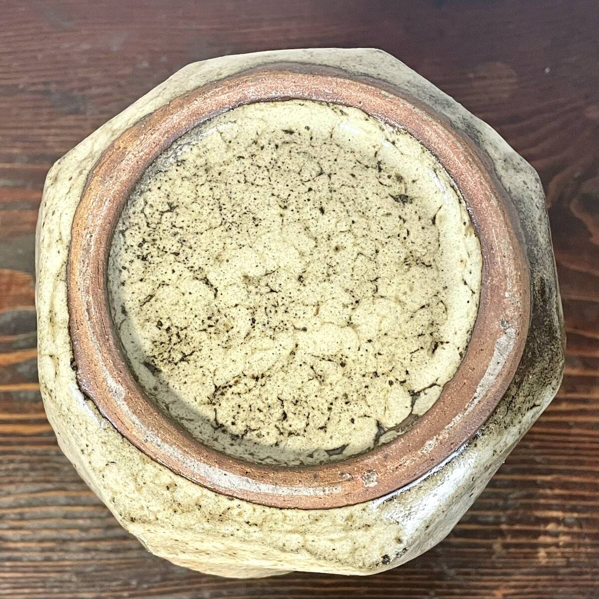 重厚な造りの古い面取壺になります。